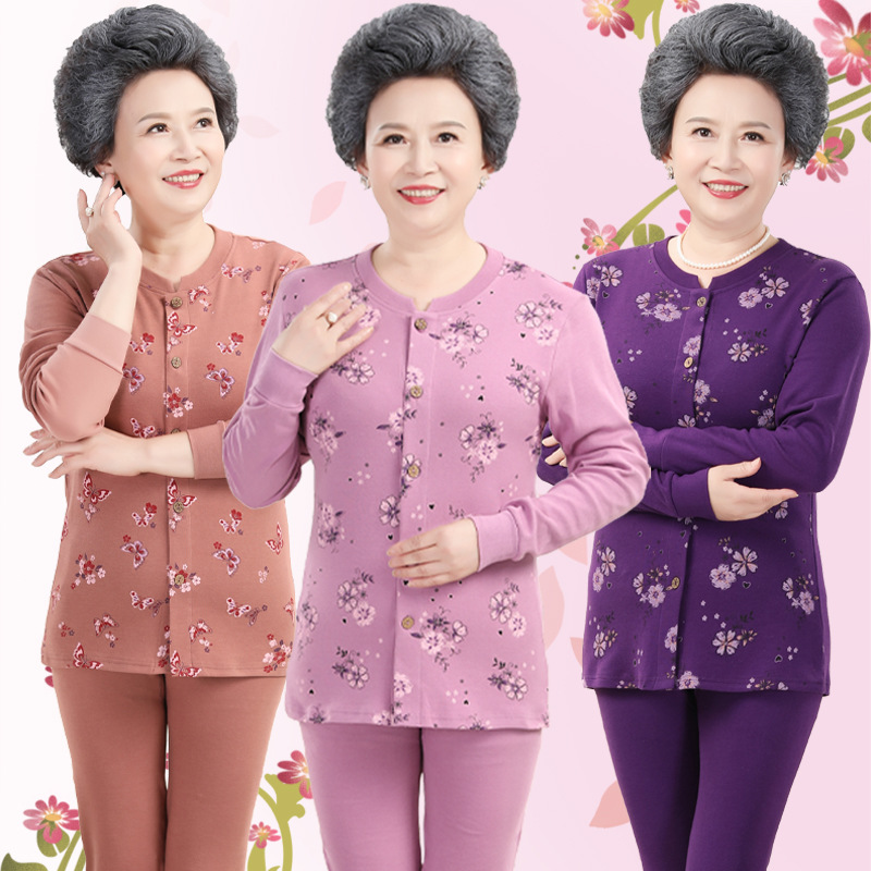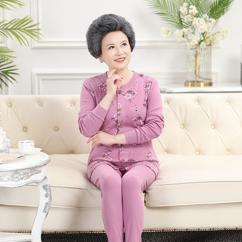 Middle-aged and elderly cotton autumn clothes long pants suit old cardigan red birth year thermal underwear cotton sweater autumn and winter