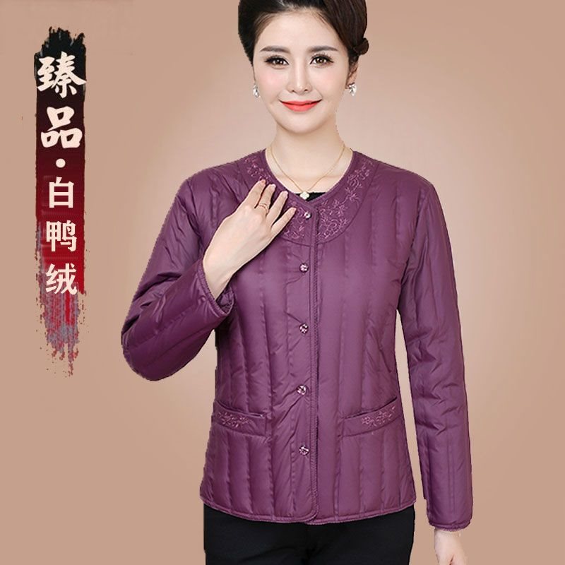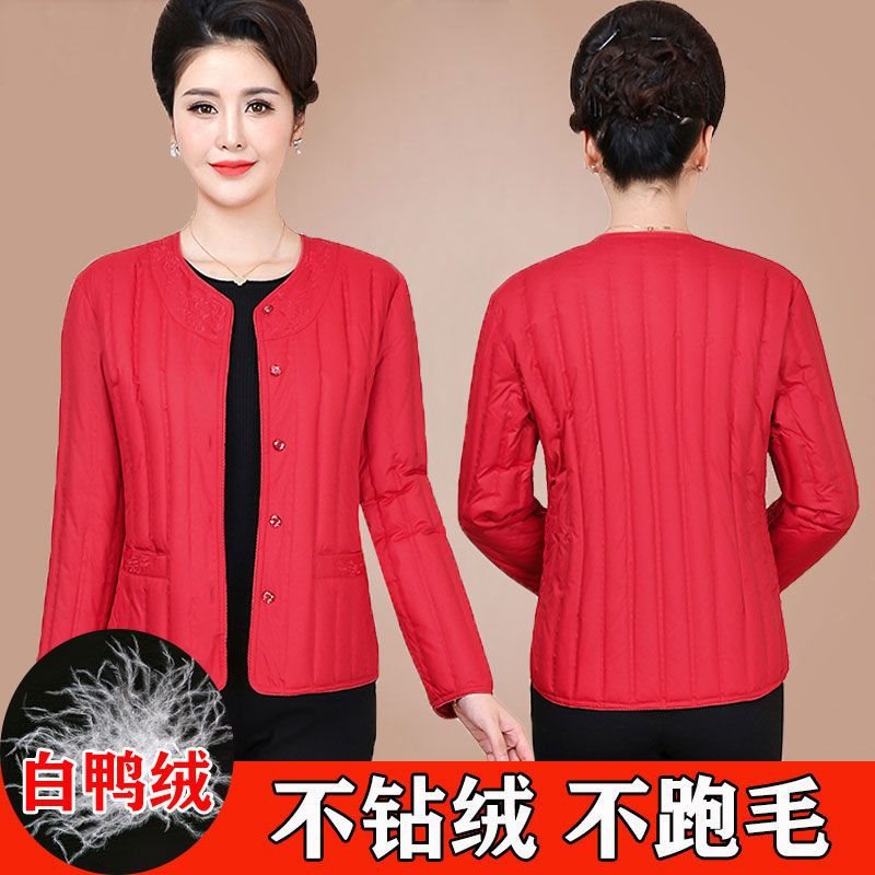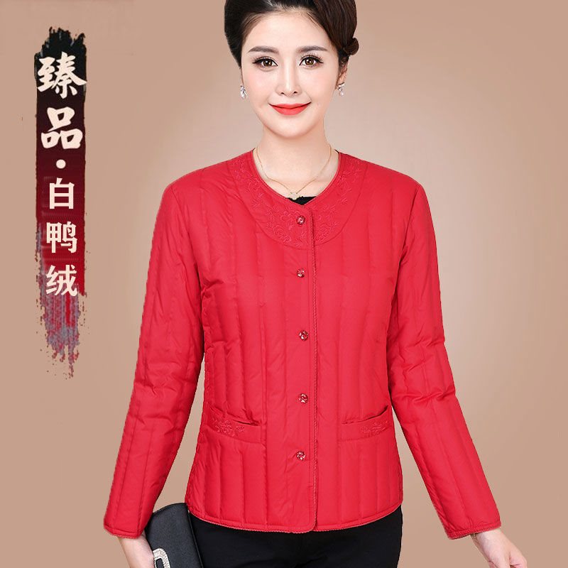 | nameOriginal | Middle-aged and elderly light down jacket women's short inner container outer wear mother's birth year red duck down warm jacket winter clothing |