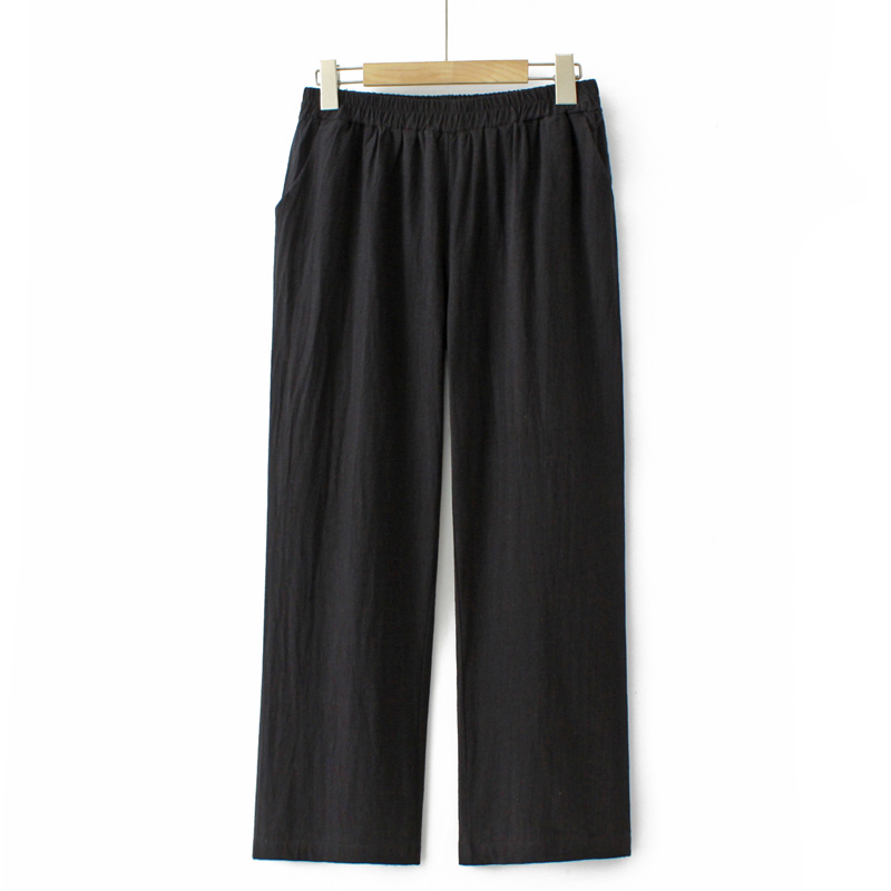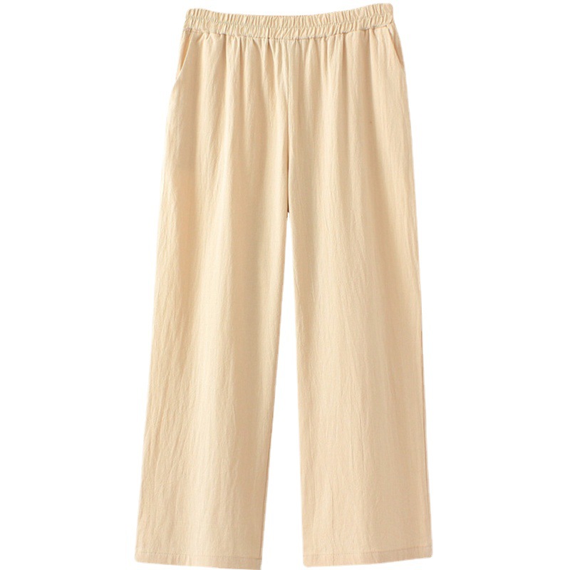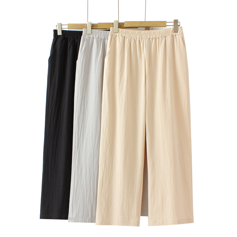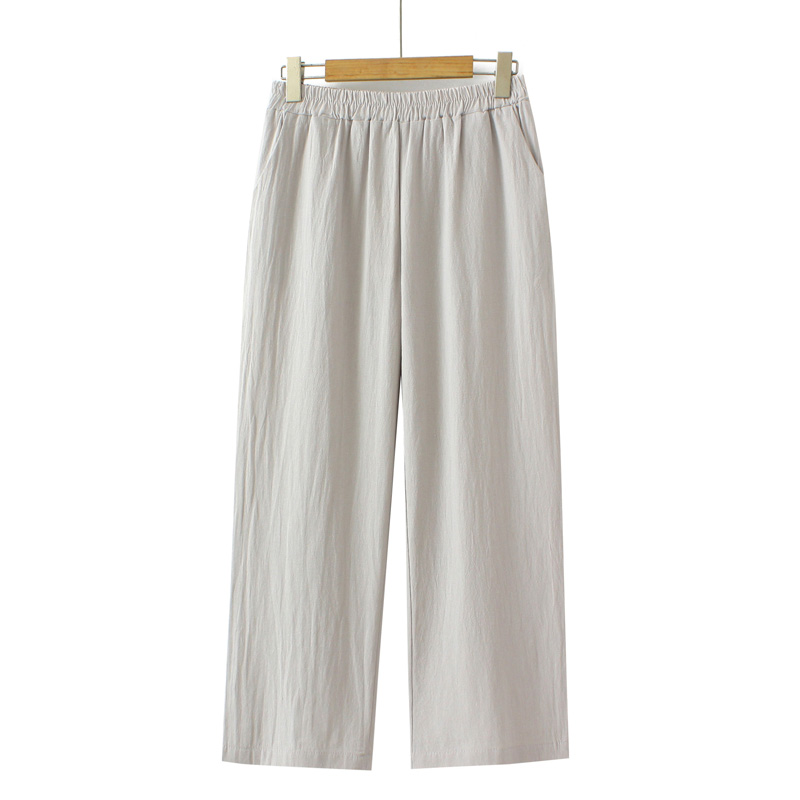 Middle-aged and Elderly Loose plus size Summer Wear Thin Cotton Cropped Pants for Women's Mother's Elapto High Waist All-match Solid Color Casual Pants
