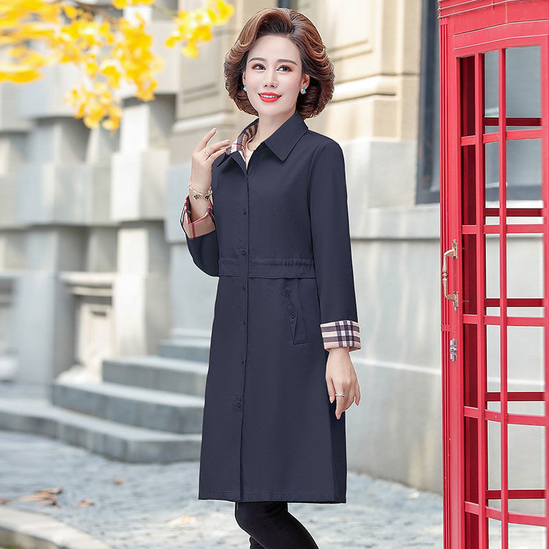| nameOriginal | Middle-aged and elderly mom top 2023 Spring and Autumn New plus size women's mid-length trench coat middle-aged western style coat |
