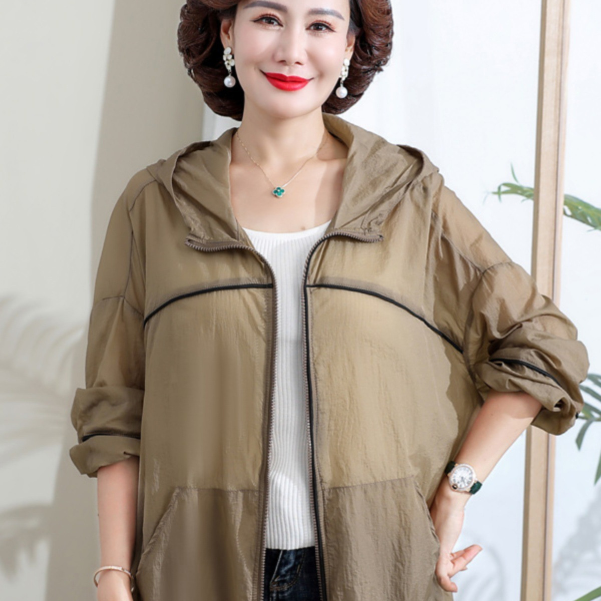 | nameOriginal | Middle-aged and elderly mother short sunscreen coat women's 2024 summer new lightweight breathable middle-aged skin sunscreen clothing |