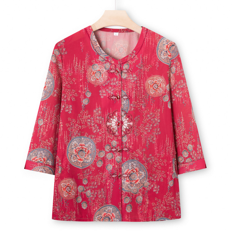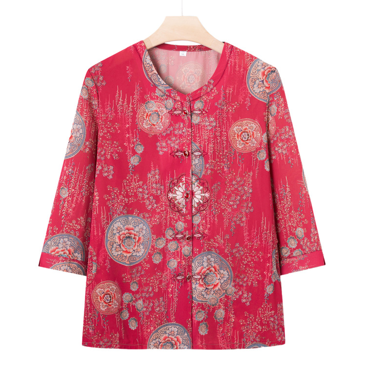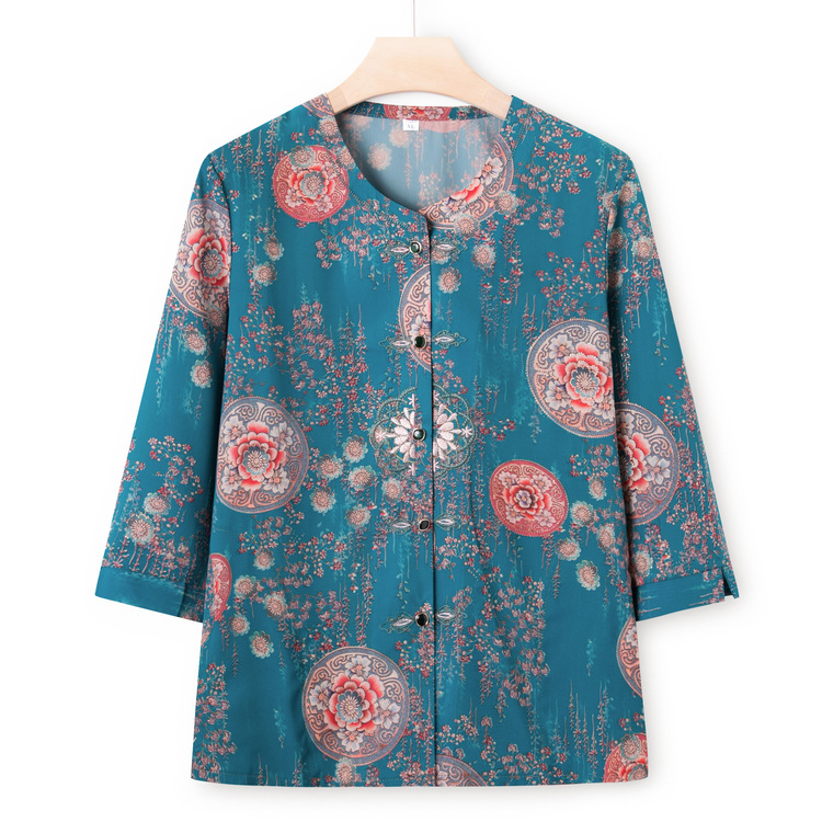 Middle-aged and Elderly Mother Summer Dress Women's Mid-sleeved Shirt New Printed Guofeng Grandma Dress Top Old Man's Wife Clothes