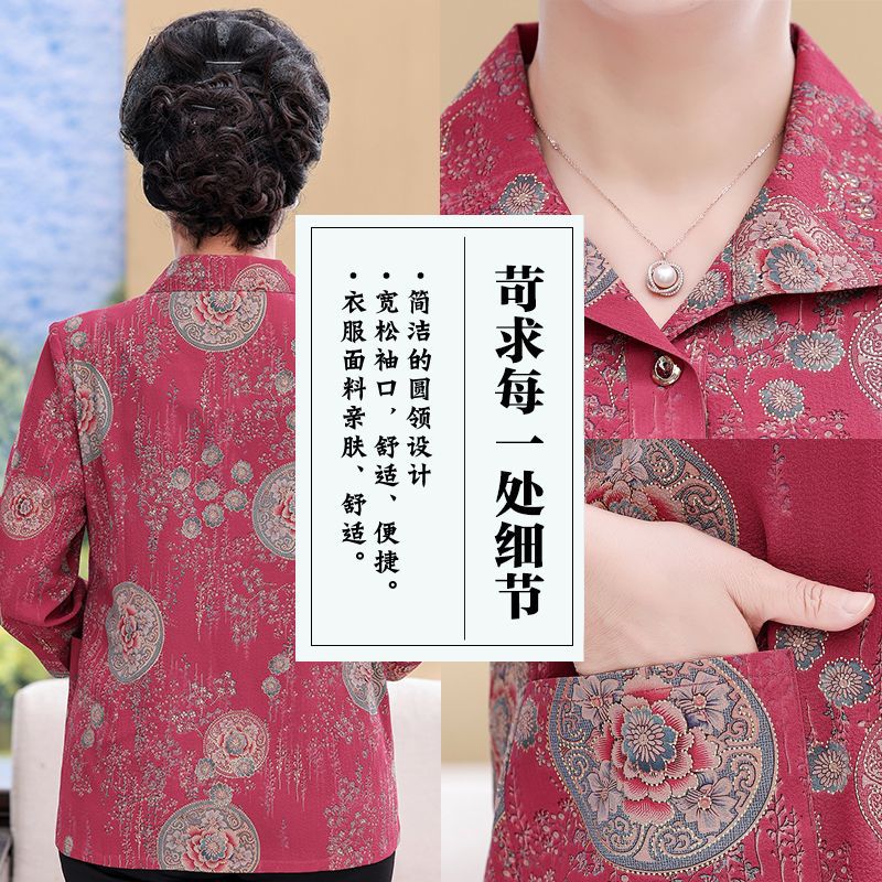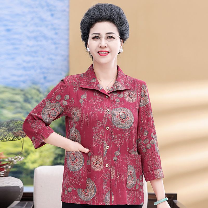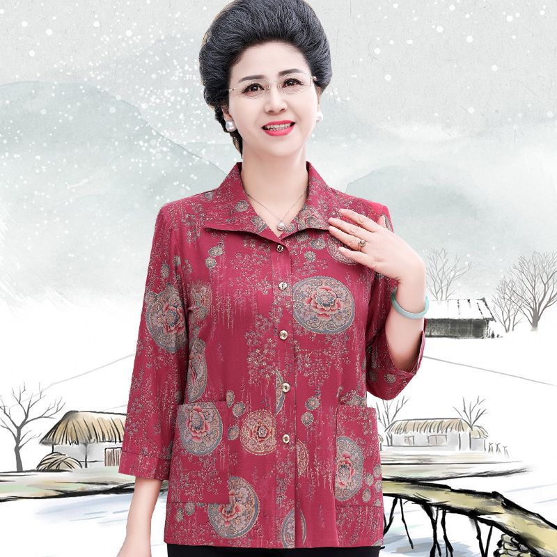 Middle-aged and elderly mother summer shirt grandma wife top shirt seven-sleeve elderly clothes thin coat women