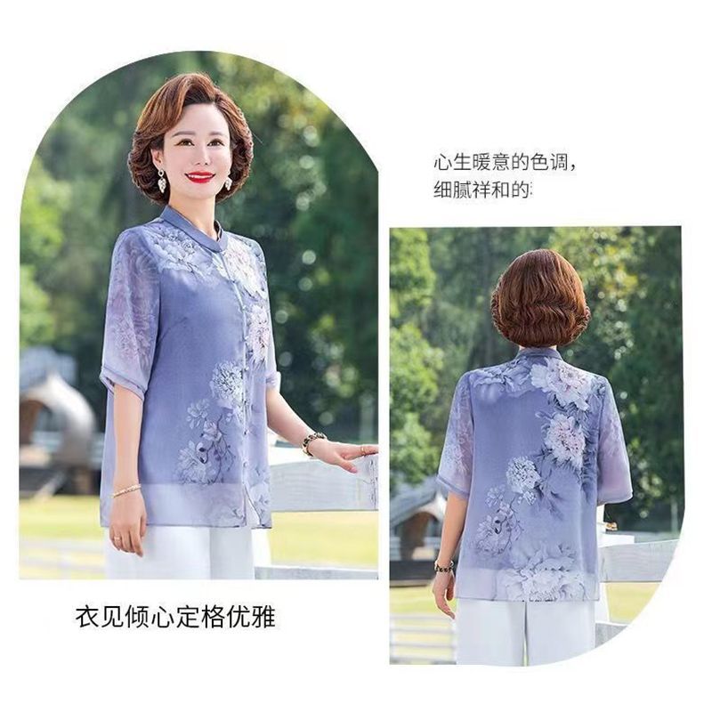 | nameOriginal | Middle-aged and elderly mother summer two-piece suit medium-sleeve chiffon shirt for the elderly shirt printing middle-aged women's cardigan thin |