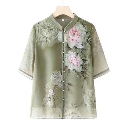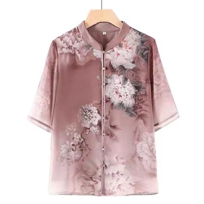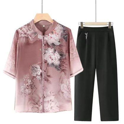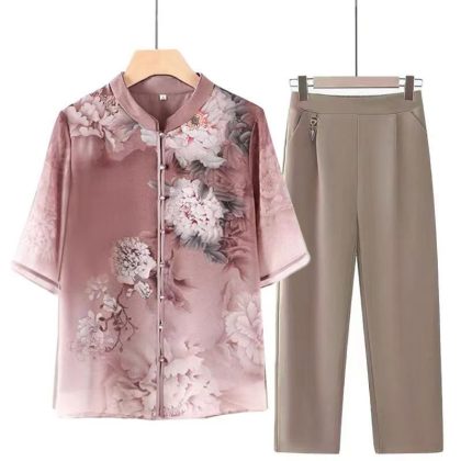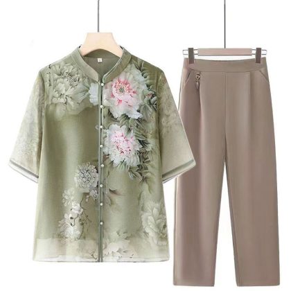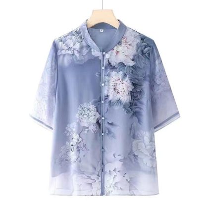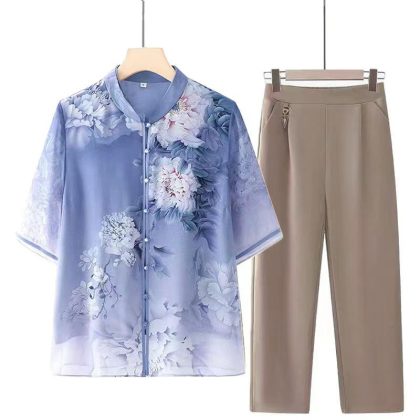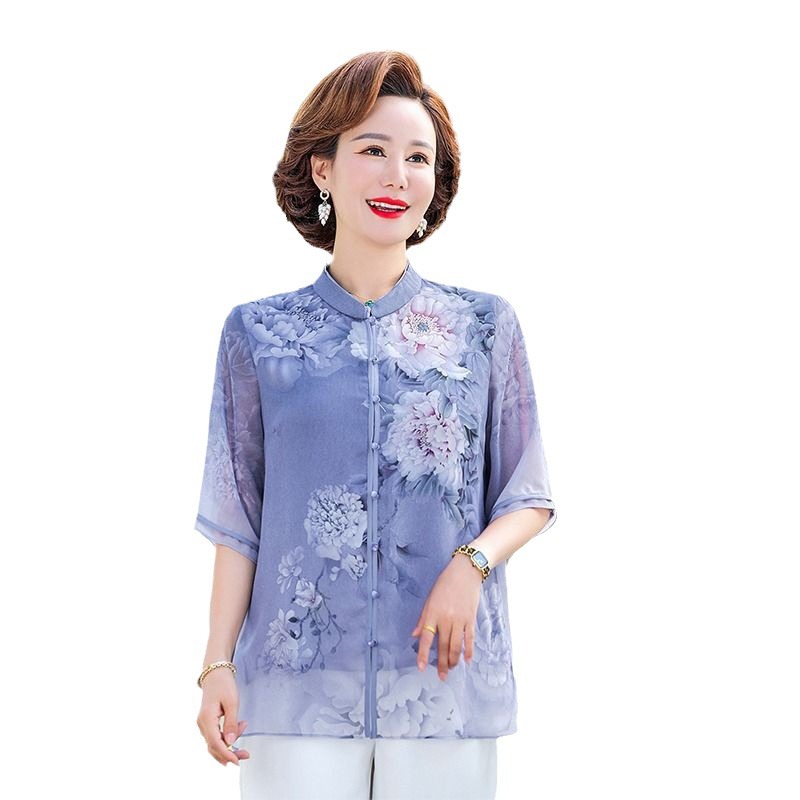 | nameOriginal | Middle-aged and elderly mother summer two-piece suit medium-sleeve chiffon shirt for the elderly shirt printing middle-aged women's cardigan thin |