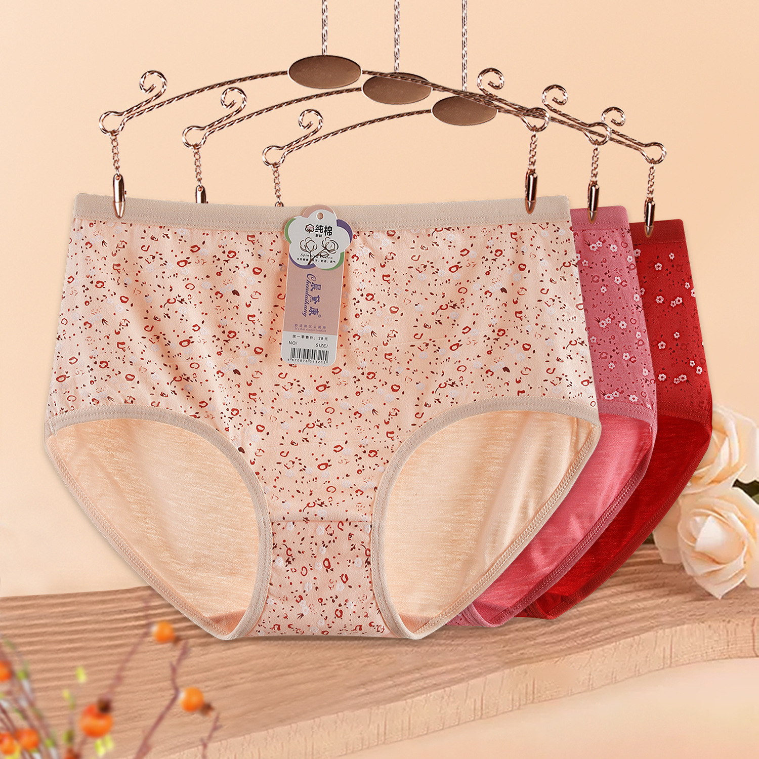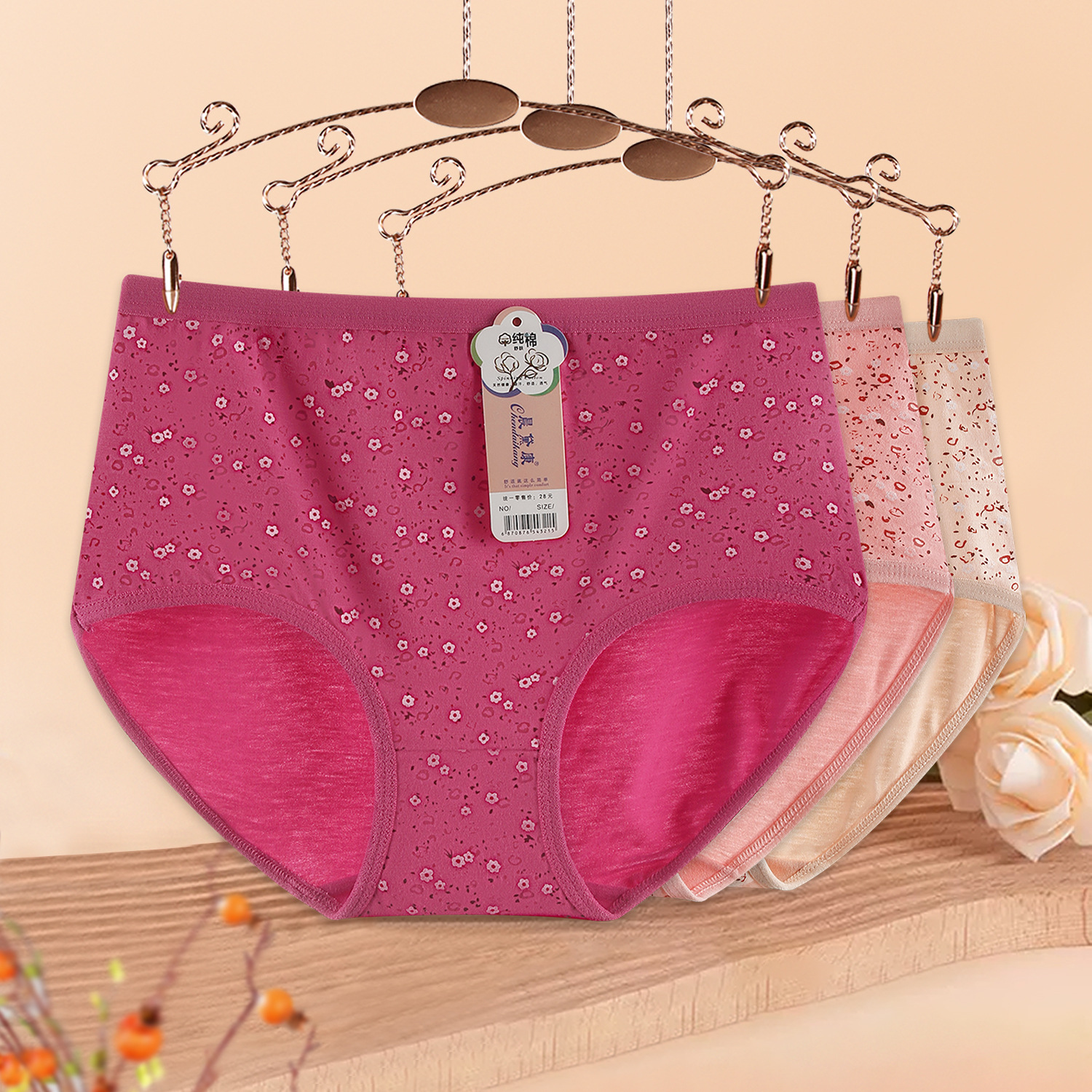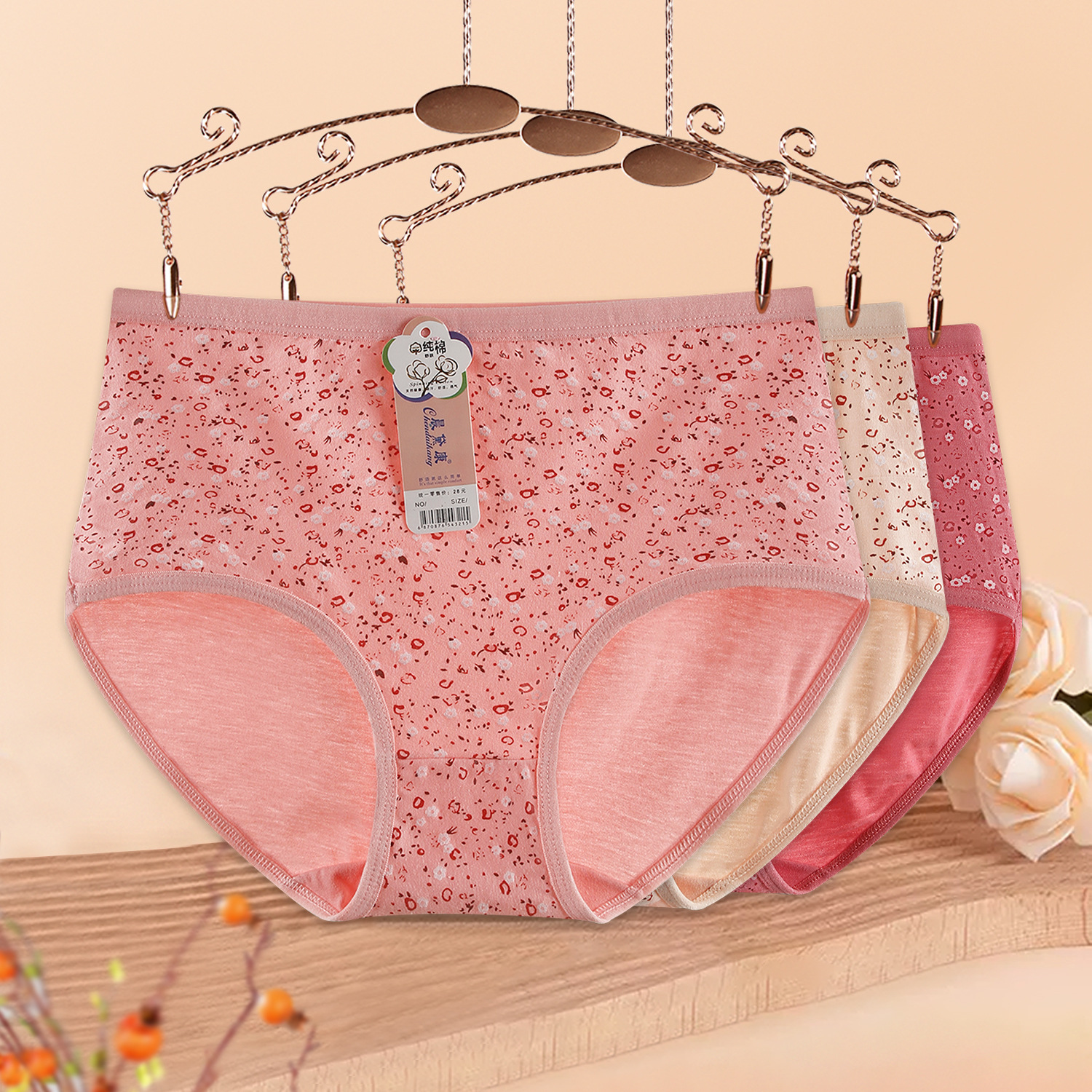 Middle-aged and Elderly Mother’s Floral Underwear Women’s Loose Skin-friendly Cotton Soft and Comfortable Double Bottom Triangle Shorts