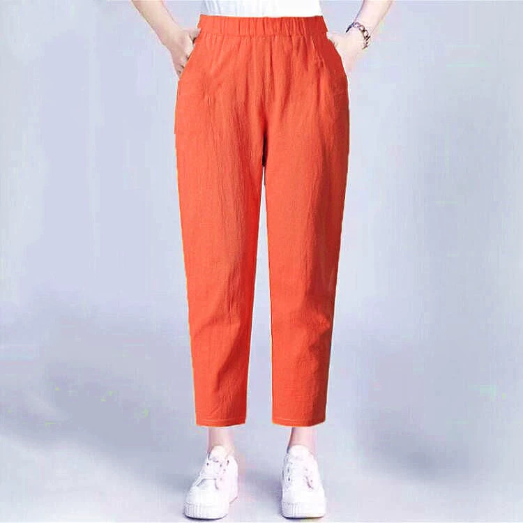 Middle-aged and elderly mothers' linen large size elastic waist nine-point pants