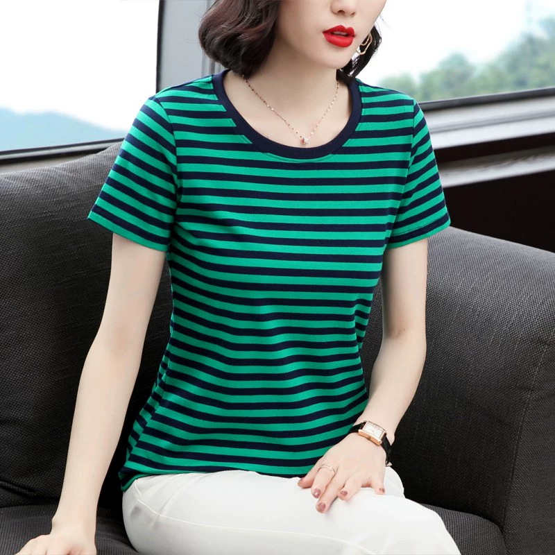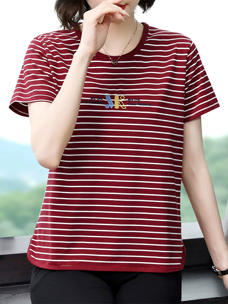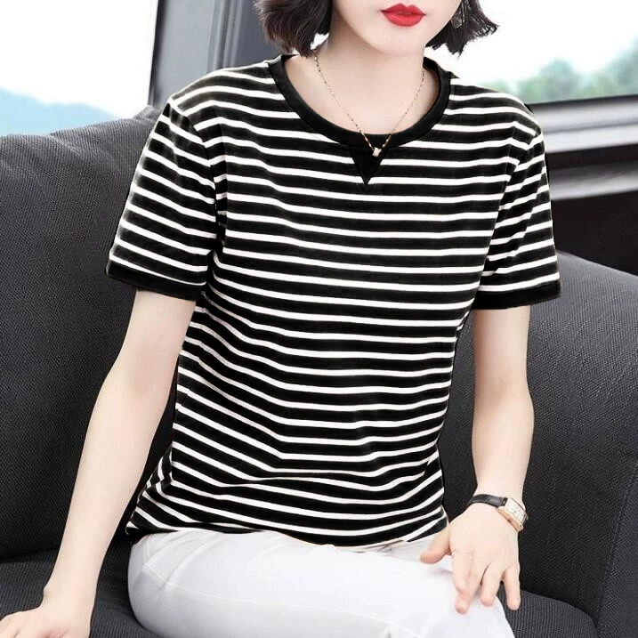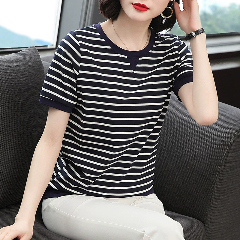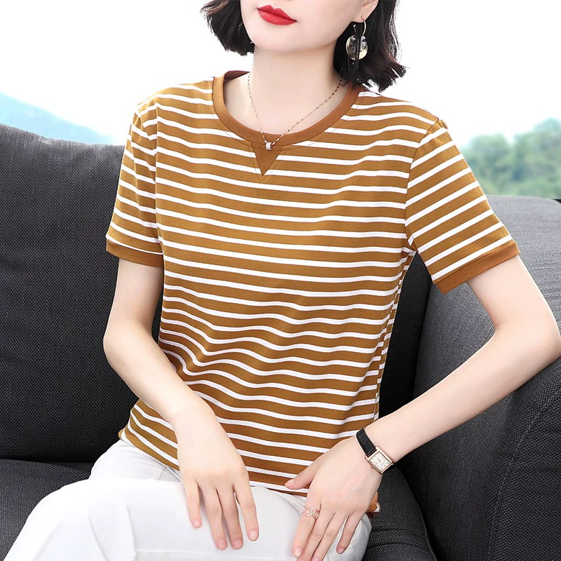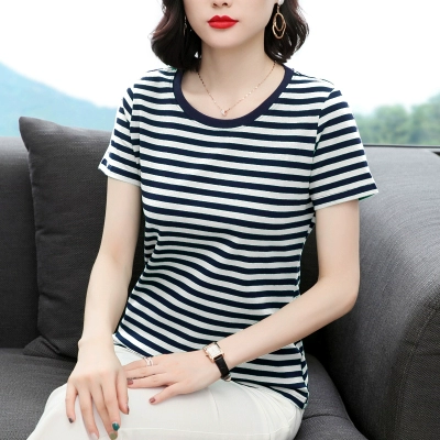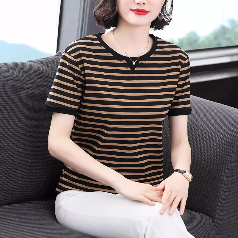 | nameOriginal | Middle-aged and elderly mothers' loose half-sleeved striped T-shirt |