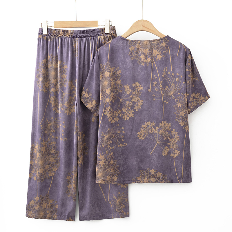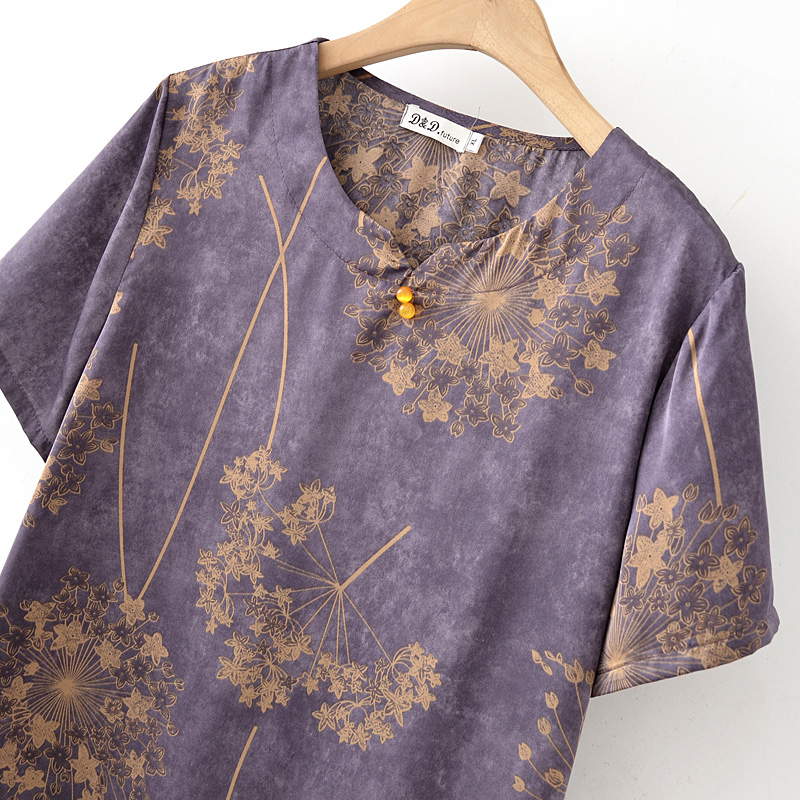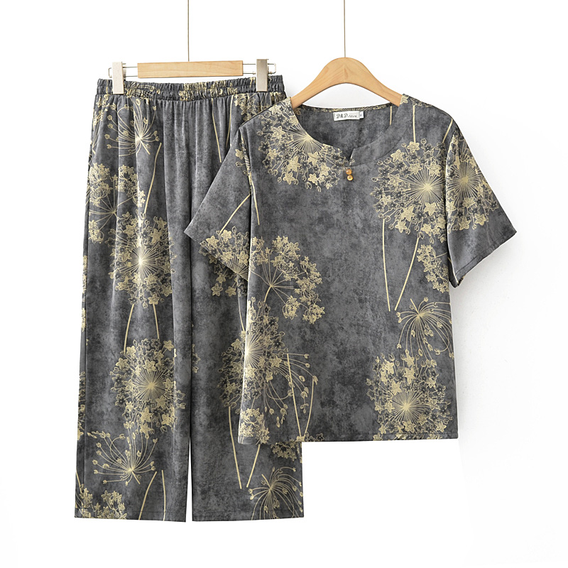 | nameOriginal | Middle-aged and Elderly Mother's Short-sleeved T-shirt suit Women's Printed Ice Silk Satin Loose plus size Old Lady Summer Clothes |