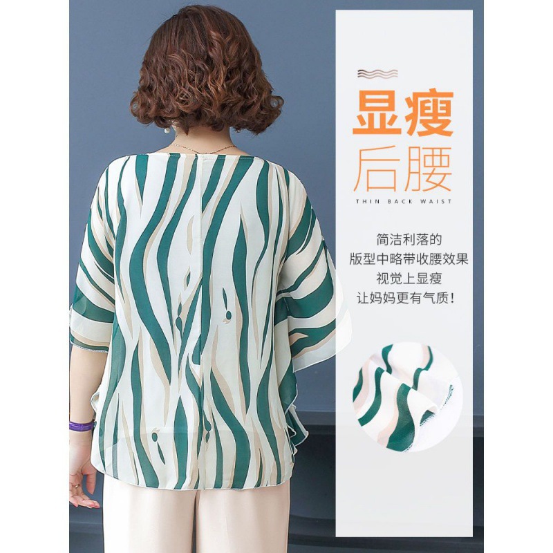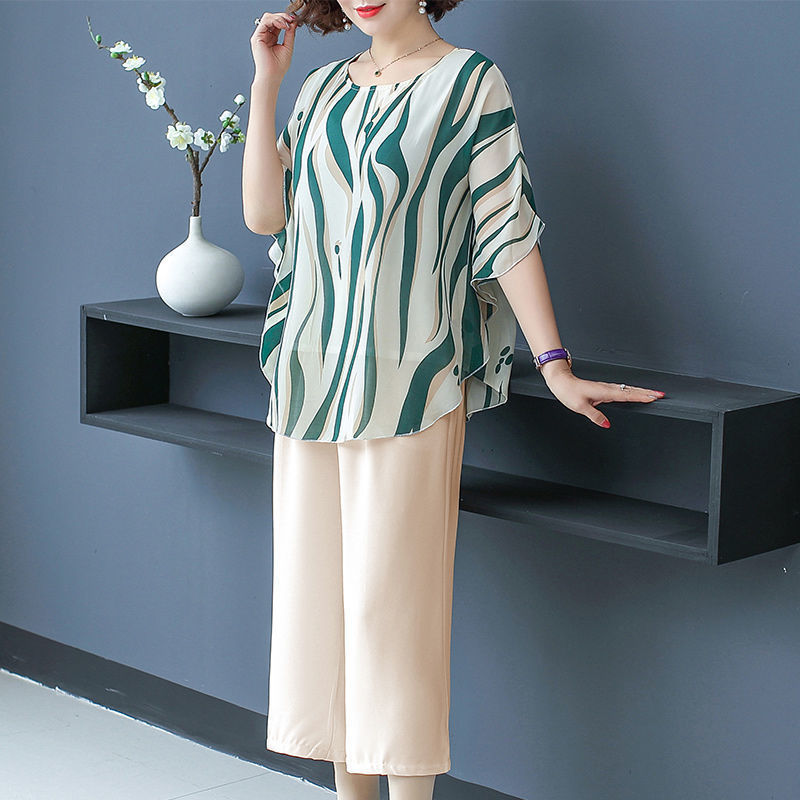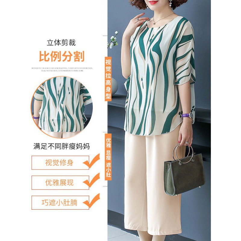 | nameOriginal | Middle-aged and elderly mother's two-piece summer 40-50 year old chiffon shirt women's top summer foreign style women's suit 60 |