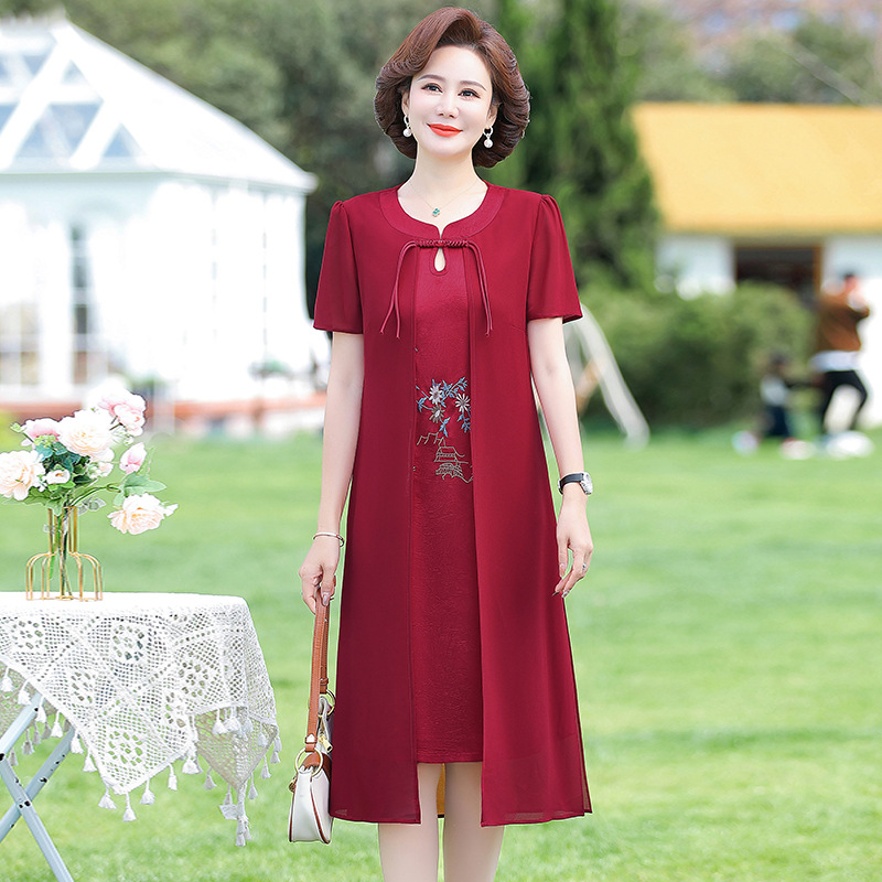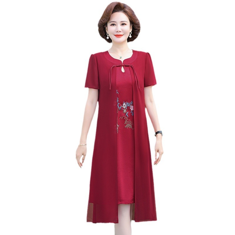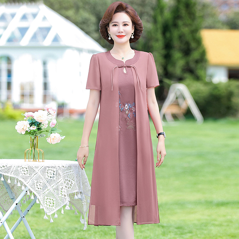 | nameOriginal | Middle-aged and elderly mother's women's summer fashion short-sleeved dress slim-fit thin noble foreign-style breathable age-reducing skirt |