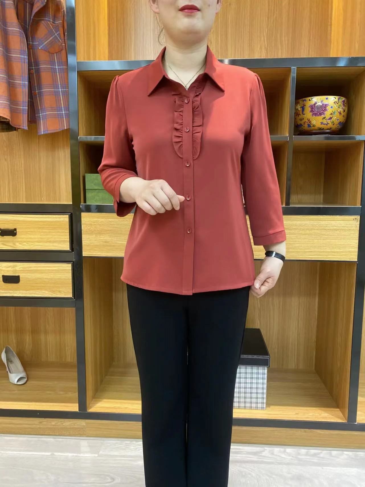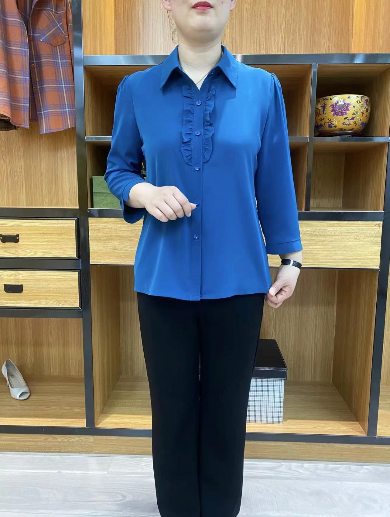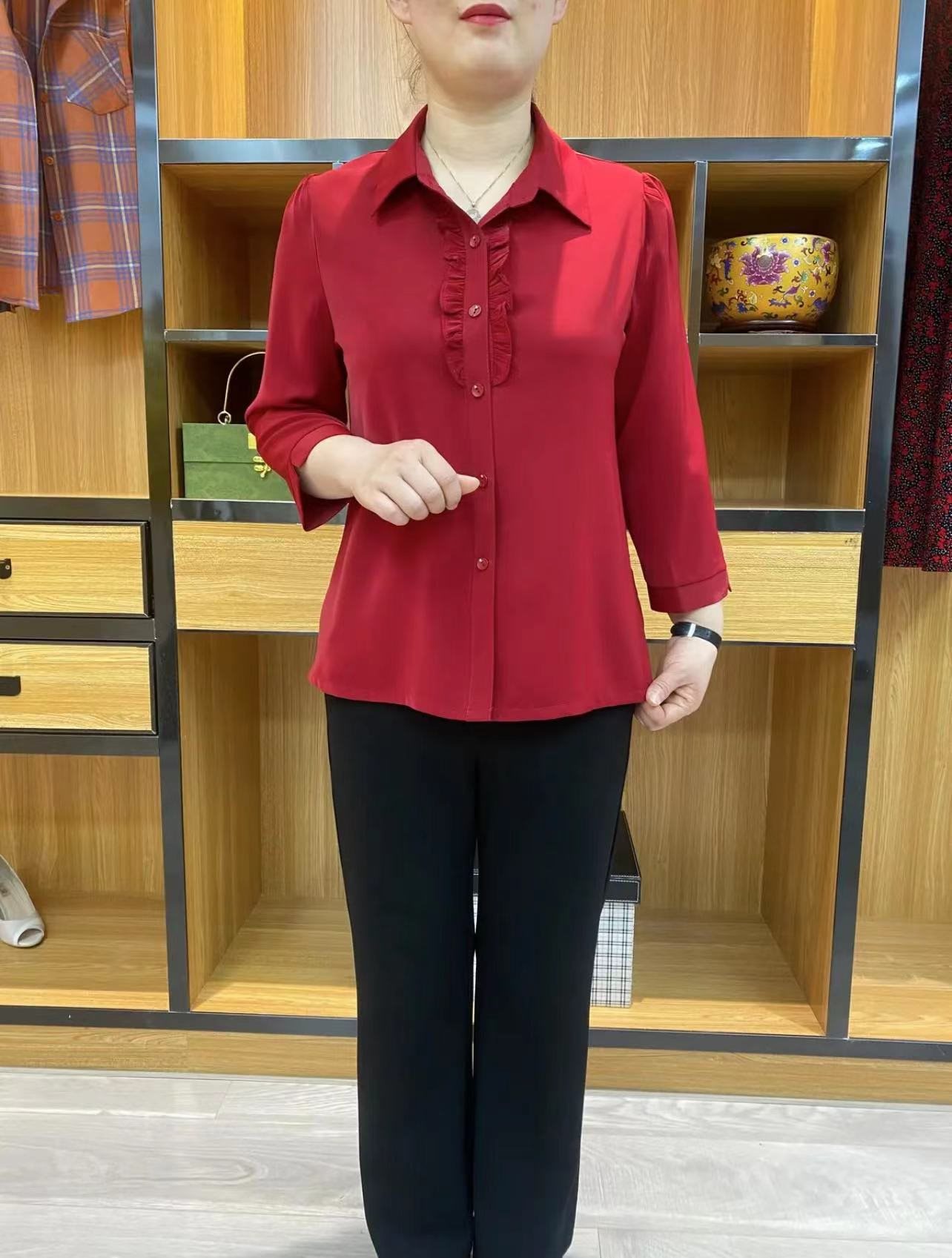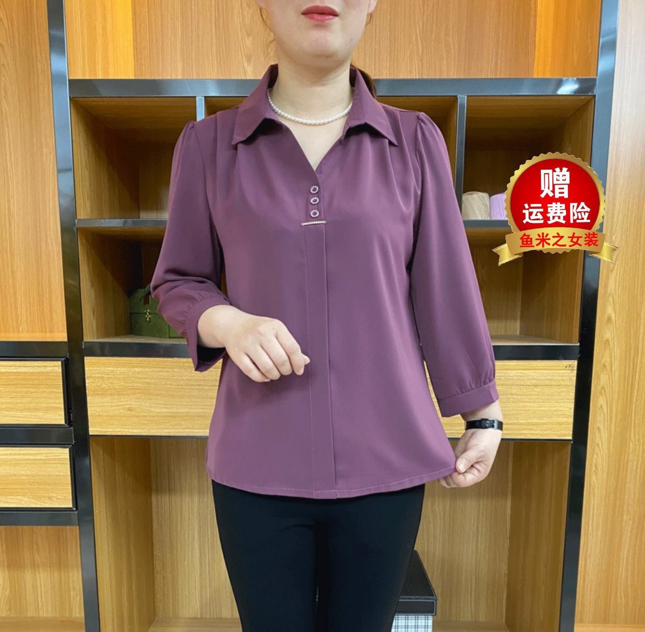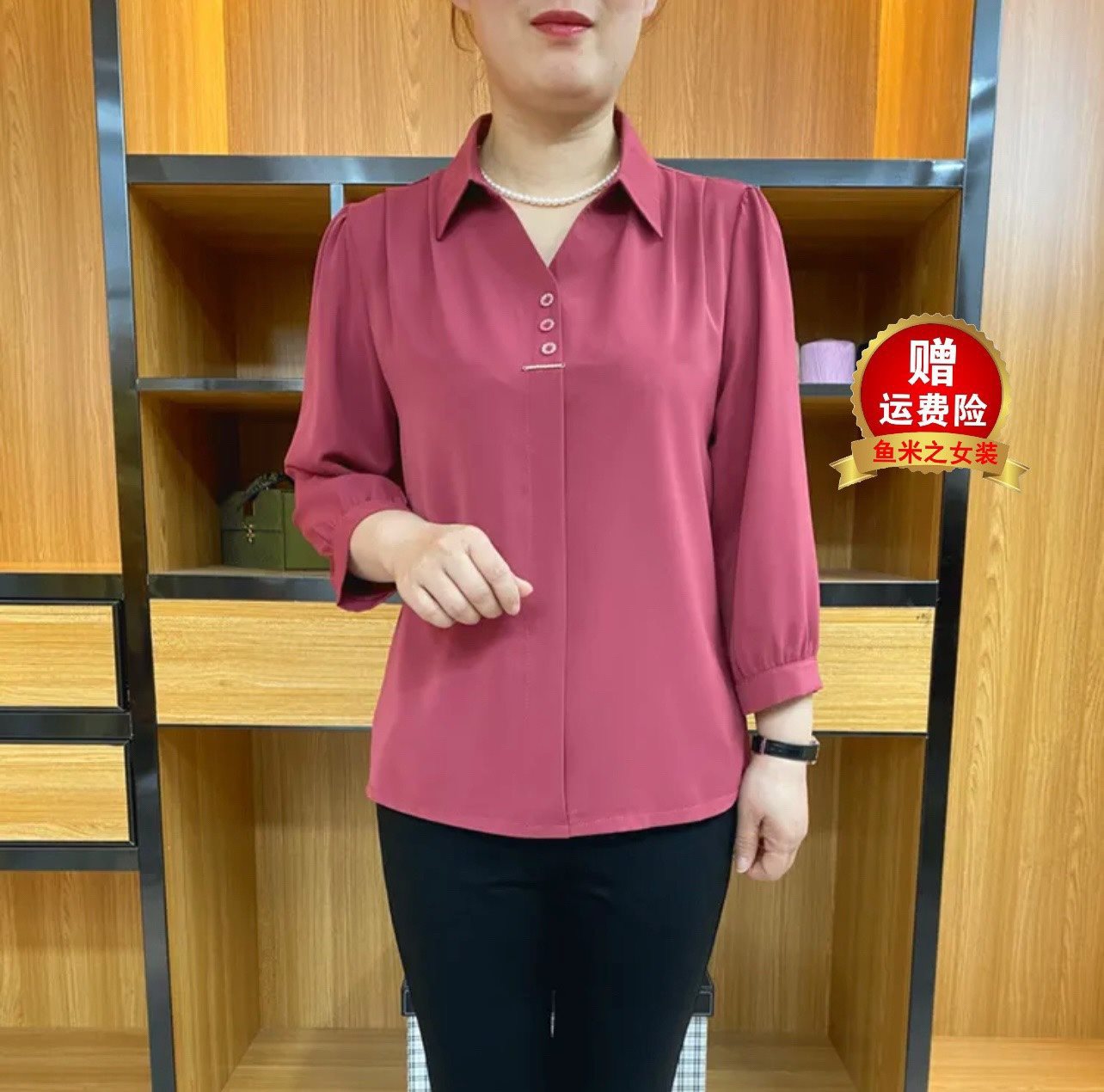 | nameOriginal | Middle-aged and elderly nine-sleeve chiffon shirt women's 2024 spring new mother's wooden-ear shirt temperament top |