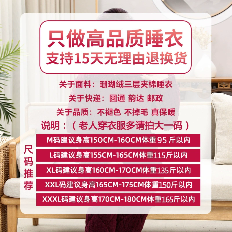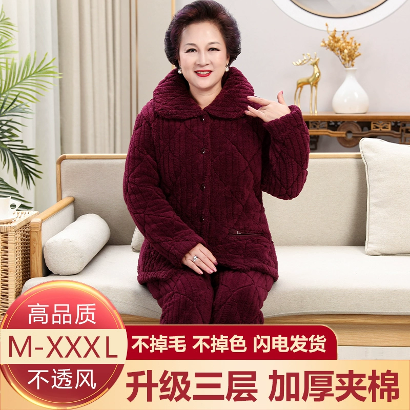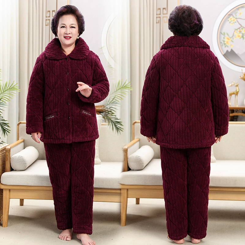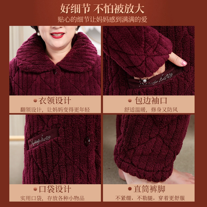 Middle-aged and elderly pajamas 2024 new winter coral velvet women's plus velvet thickened mother's warm home clothes for the elderly and grandma