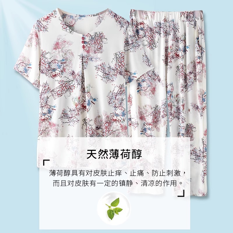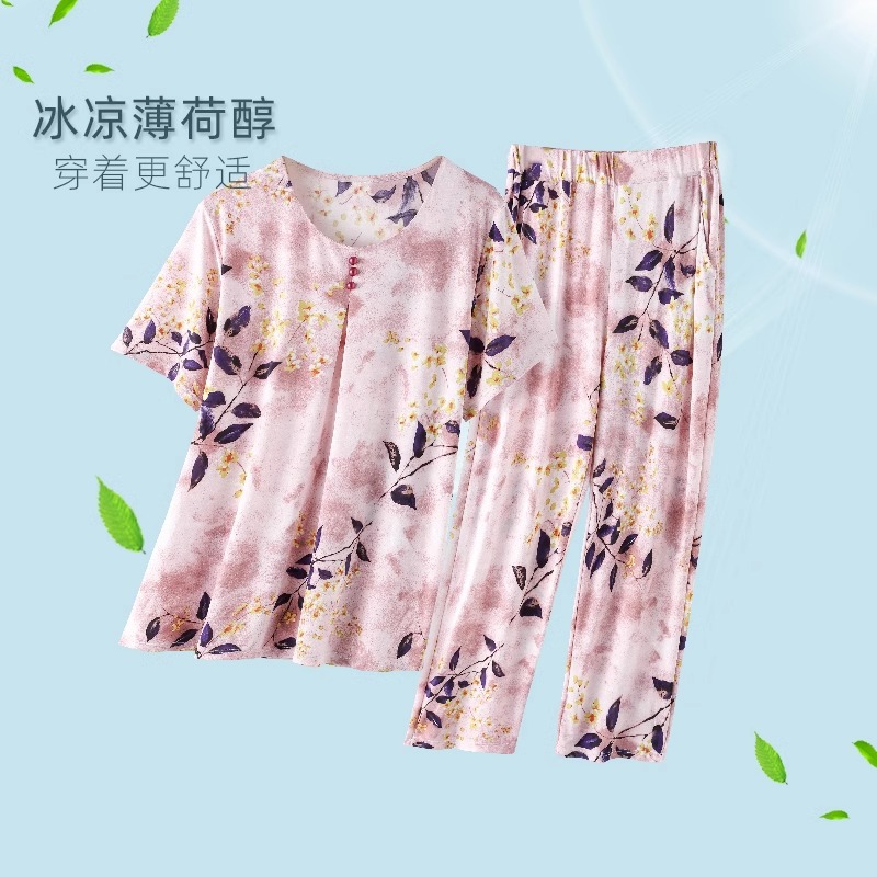 | nameOriginal | Middle-aged and elderly people's ice silk summer clothing 2024 new mother's short-sleeved pajamas old lady's thin cool home clothing suit |