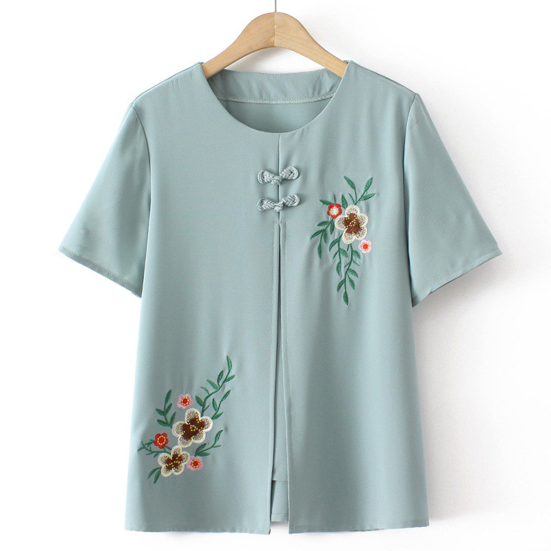 Middle-aged and elderly people’s spring and summer clothes fake two-piece T-shirt grandma’s short-sleeved top mom’s summer chiffon shirt for the elderly