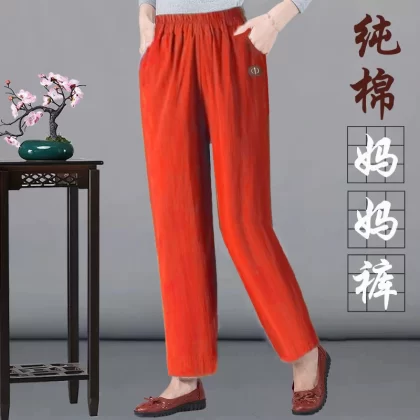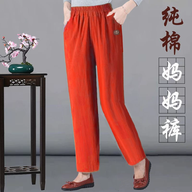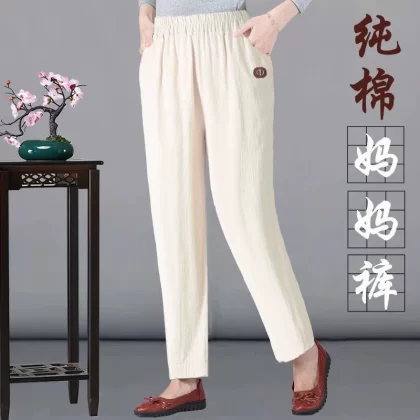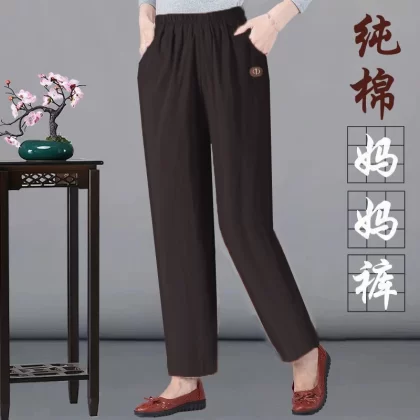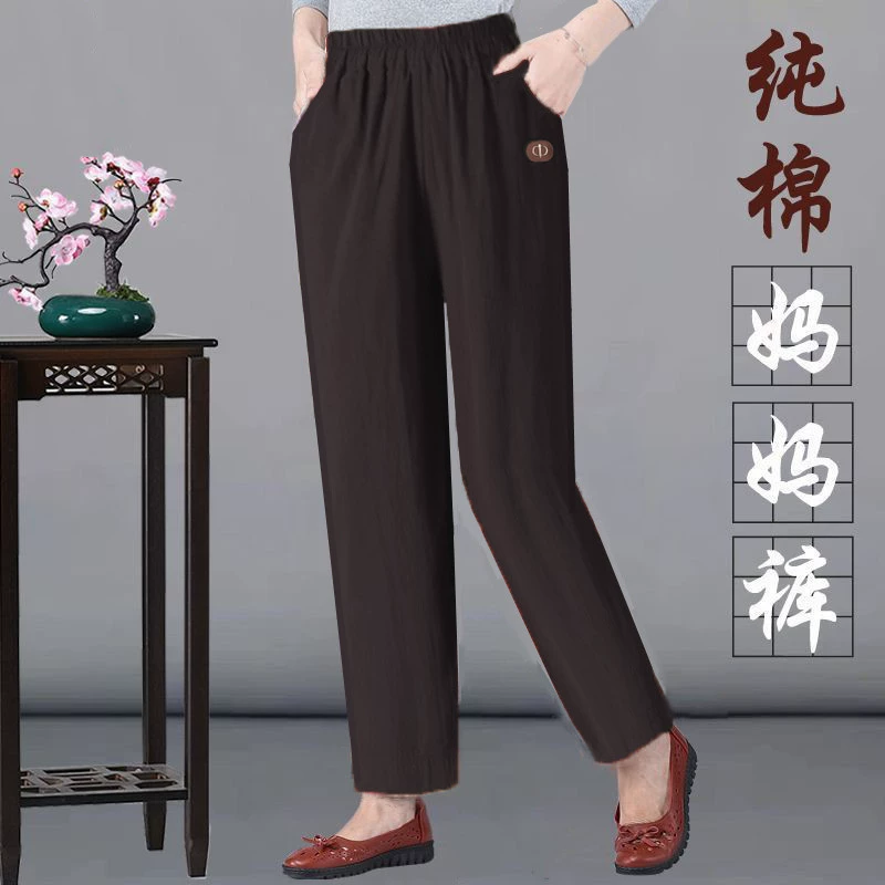 nameOriginal | Middle-aged and elderly pure cotton elastic waist women's nine-point mom pants |