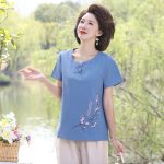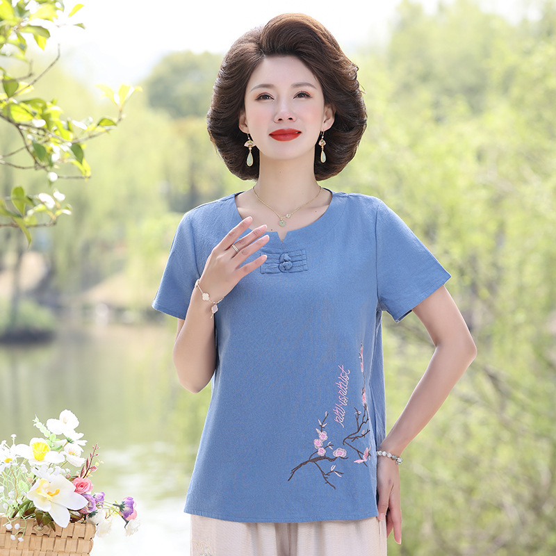 Middle-aged and elderly summer cotton and linen suit women’s 60-70-year-old mother’s short-sleeved t-shirt top clothes grandma loose two-piece set