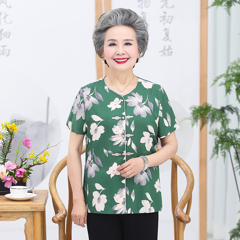 | nameOriginal | Middle-aged and elderly summer short-sleeved cardigan top grandma cotton shirt 60-70 years old mother old lady shirt |