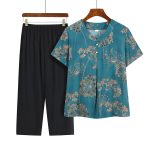 Middle-aged and elderly summer suit women’s clothing 60-year-old clothes printed grandma’s short-sleeved old lady’s top two-piece set