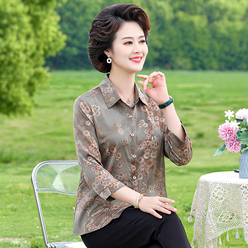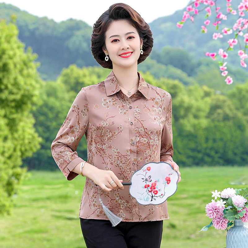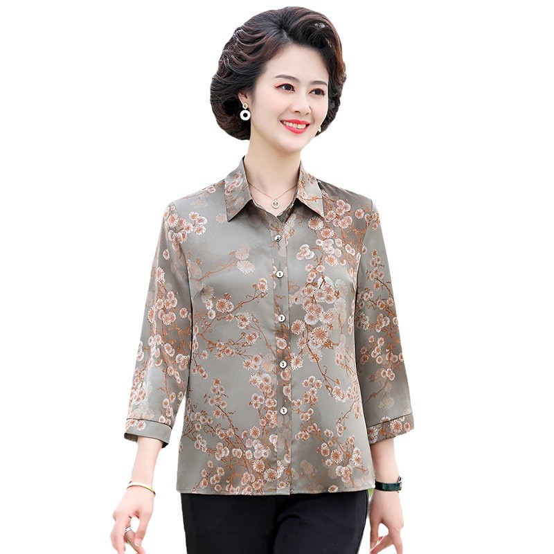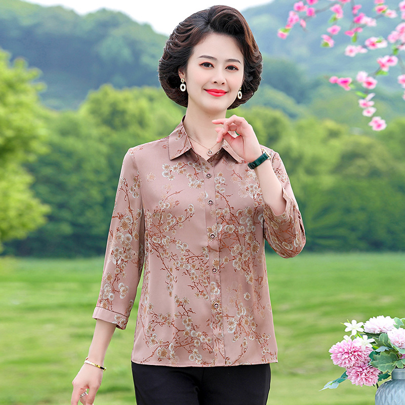 | nameOriginal | Middle-aged and elderly summer western style mother shirt color imitation silk top spring and autumn new women's fashionable loose seven-point sleeve |