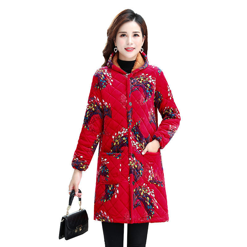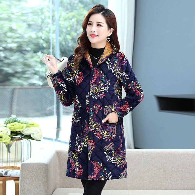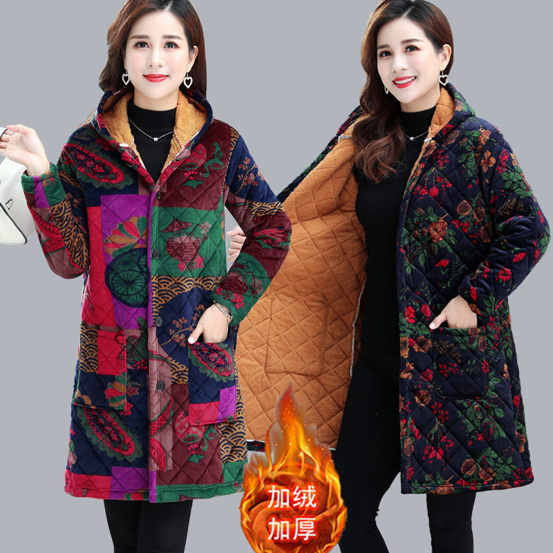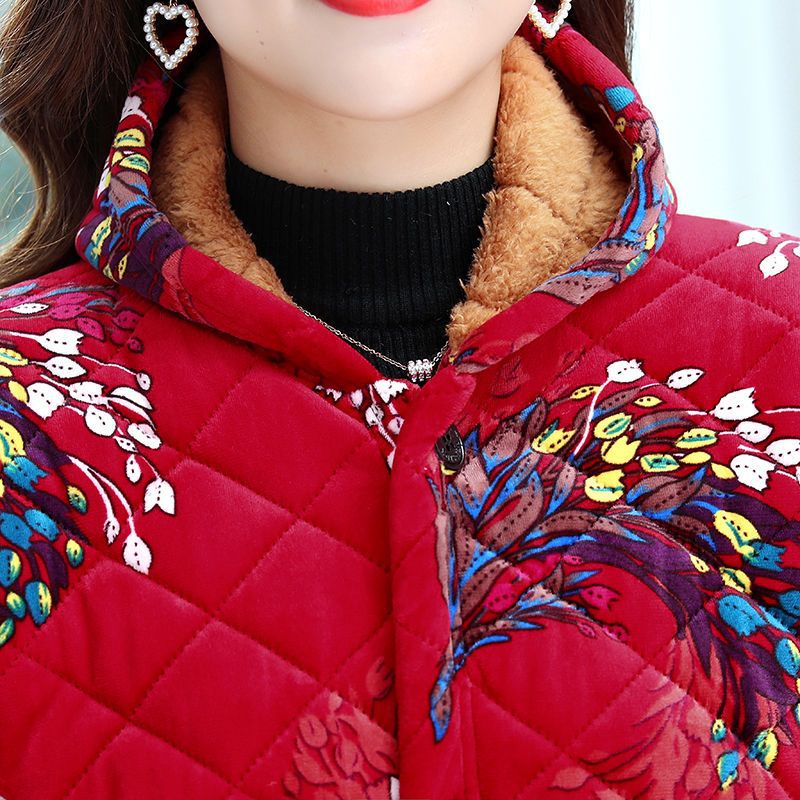 Middle-aged and elderly women’s autumn and winter plus-size cotton-padded jacket for chubby mothers ethnic style cotton-padded jacket fleece-lined thickened cotton-padded jacket