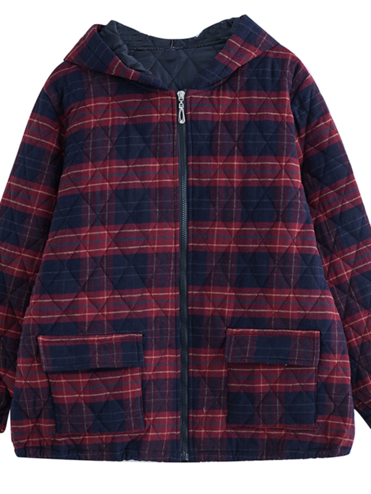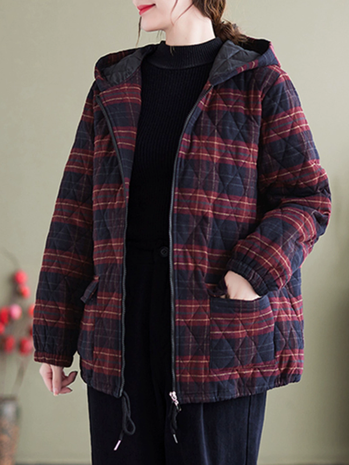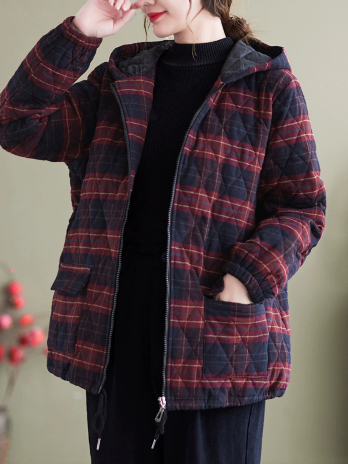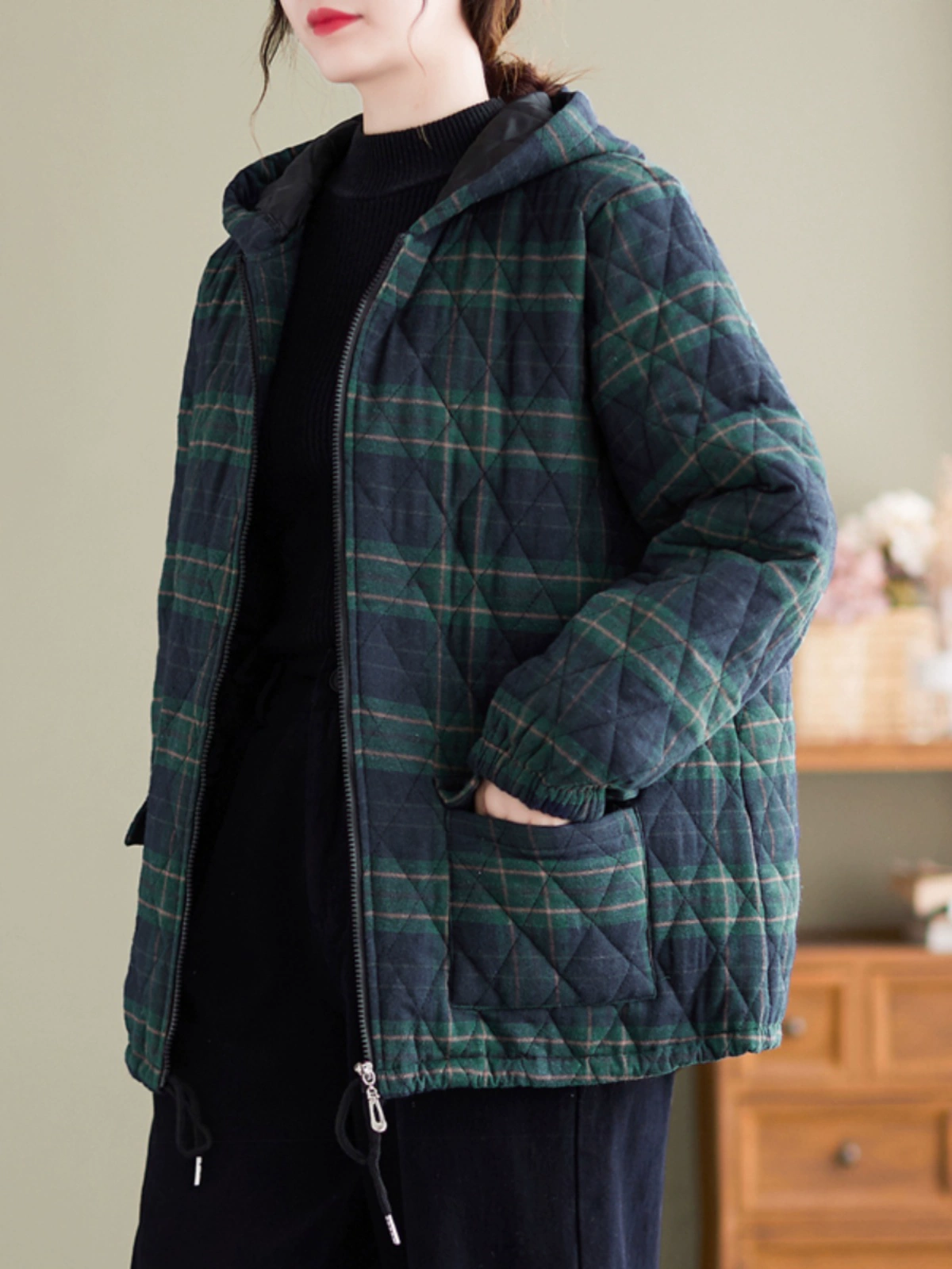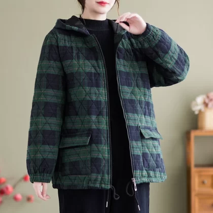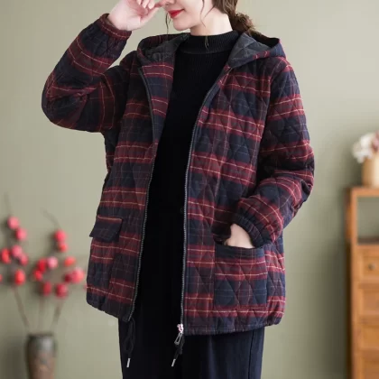 Middle-aged and elderly women’s clothing 2024 winter new loose casual plaid cotton coat cotton padded warm mother jacket