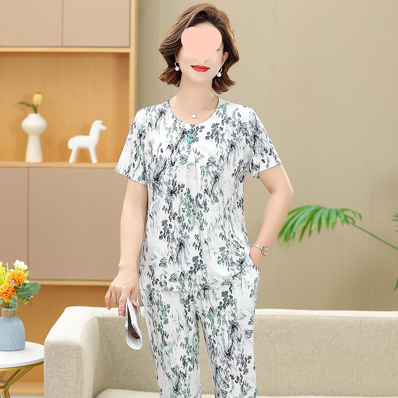 | nameOriginal | Middle-aged and elderly women's clothing mother summer clothing grandmother casual fashion ice silk suit breathable elderly short sleeve top thin |