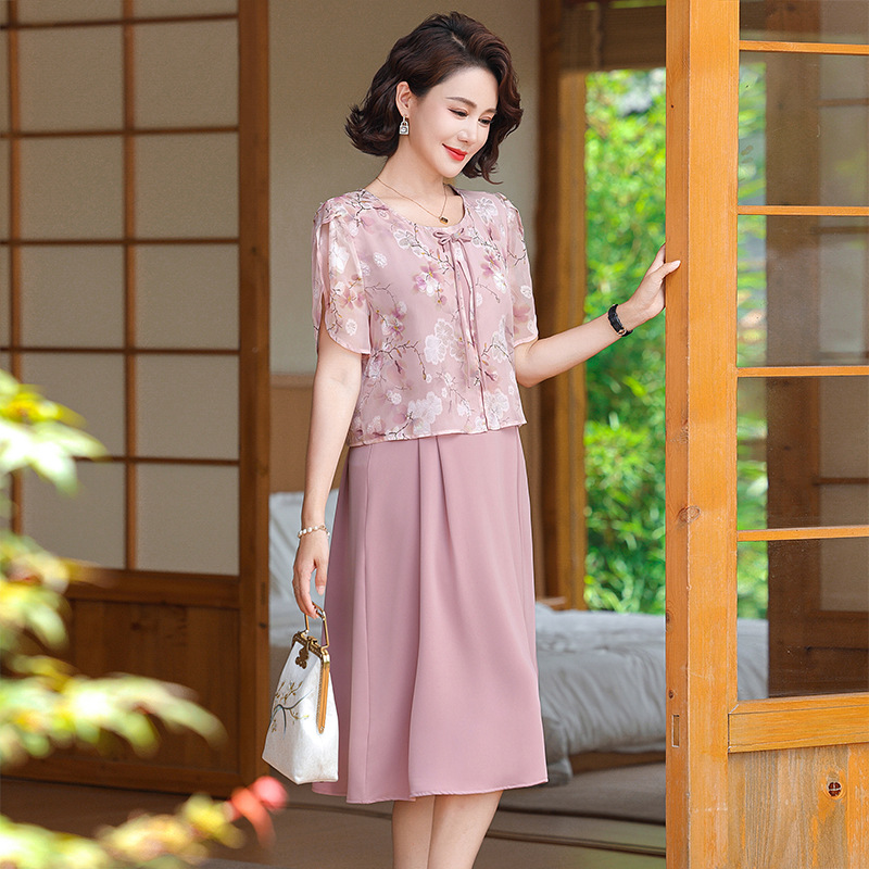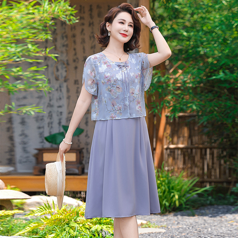 | nameOriginal | Middle-aged and elderly women's clothing summer 2024 new foreign-style mother noble fake two-piece dress new Chinese-style national style skirt |