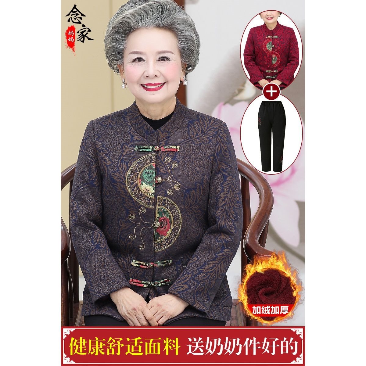 | nameOriginal | Middle-aged and elderly women's grandma's spring coat female 60-year-old 70-year-old mother's autumn suit wife's gown for the elderly |