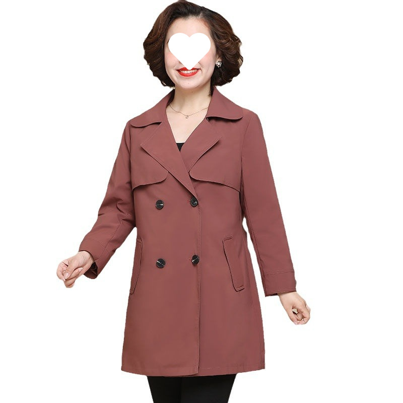 Middle-aged and elderly women’s mid-length trench coat Spring and Autumn New British style middle-aged mom coat Women’s