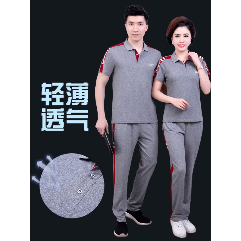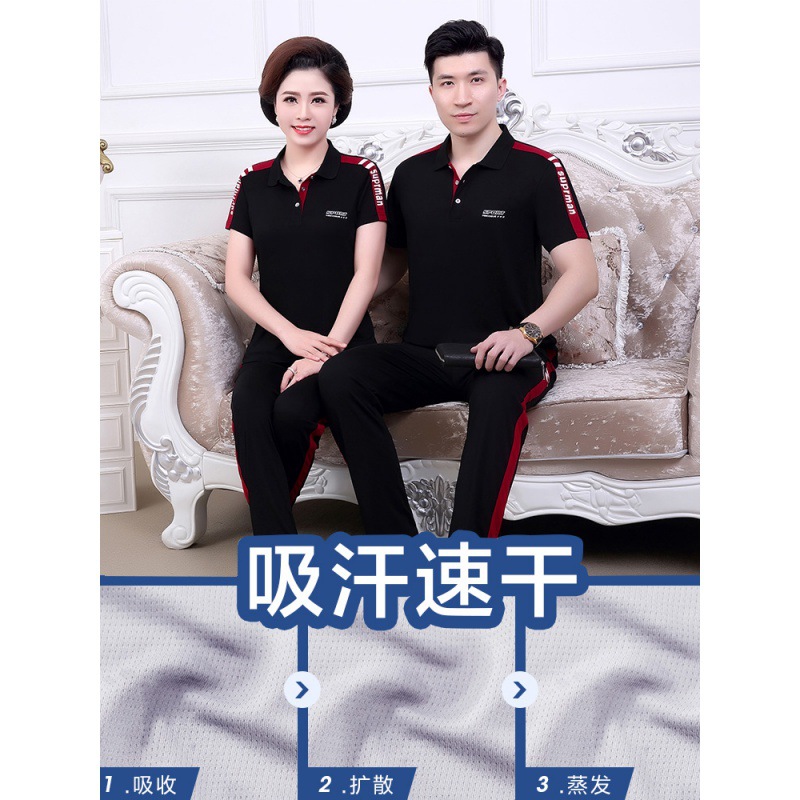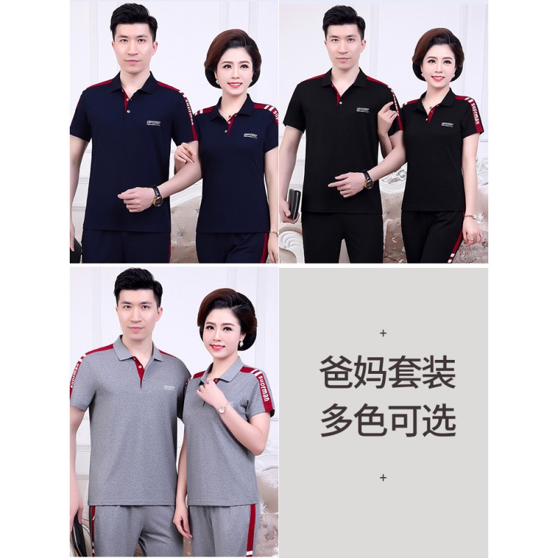 | nameOriginal | Middle-aged and elderly women's mom T-shirt couple sports suit men's summer short-sleeved polo shirt dad casual summer T |