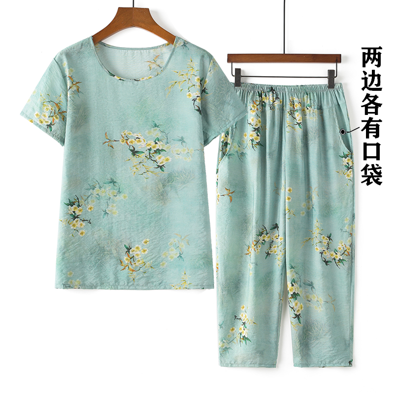 | nameOriginal | Middle-aged and elderly women's summer clothes suit old mother's cotton silk top old woman's short-sleeved two-piece clothes for the elderly |