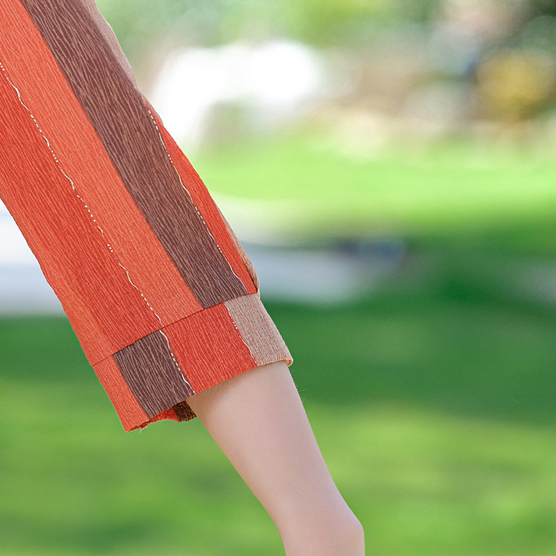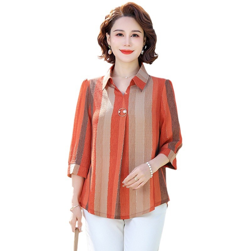 Middle-aged and elderly women’s summer new lapel sleeve shirt top mother’s elegant comfortable T-shirt striped shirt