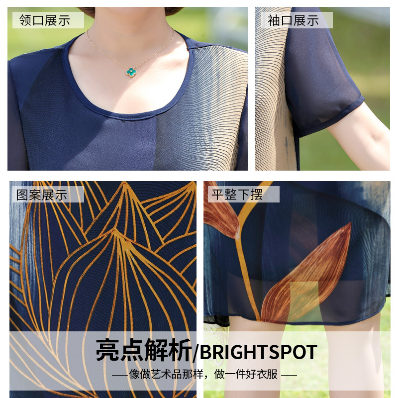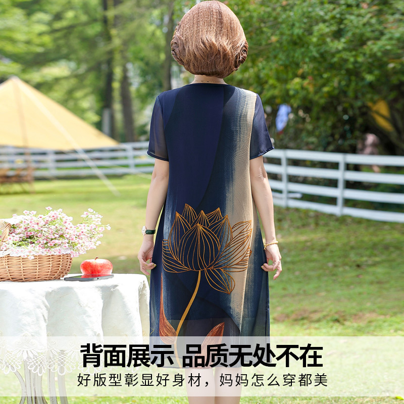 Middle-aged and elderly women's summer short-sleeved chiffon long skirt 40-year-old 50-year-old mother summer elegant fashion large size dress