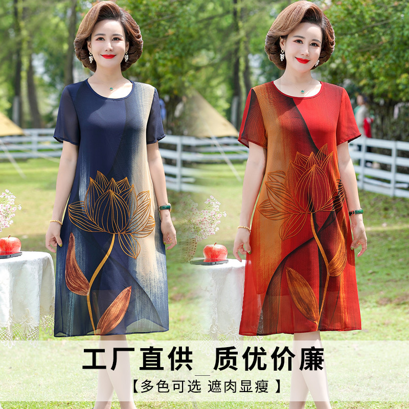| nameOriginal | Middle-aged and elderly women's summer short-sleeved chiffon long skirt 40-year-old 50-year-old mother summer elegant fashion large size dress |