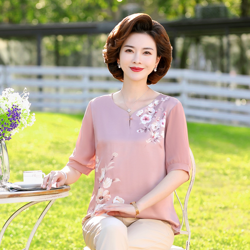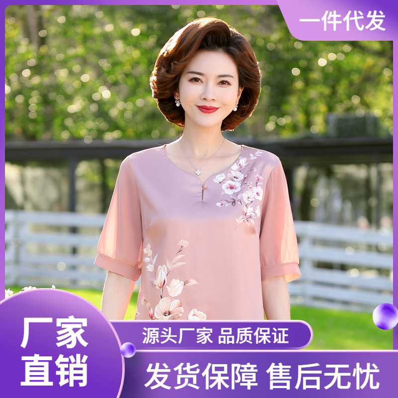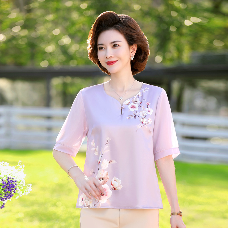 | nameOriginal | Middle-aged and Elderly Women's Summer Short-sleeved T-shirt 40-year-old 50-year-old Imitation Silk Half-sleeved Western Style Small Shirt Mother's Summer Top |