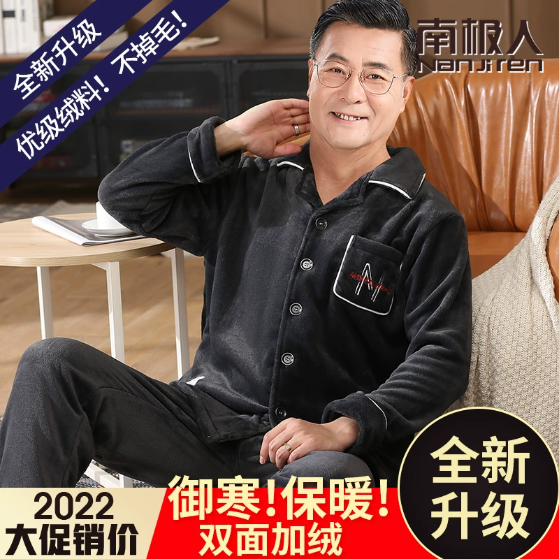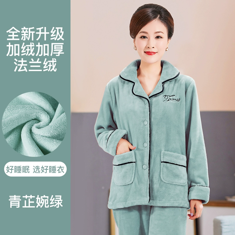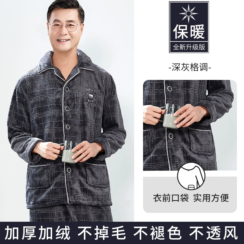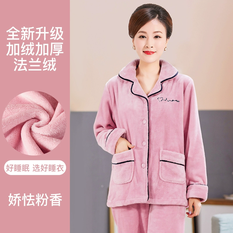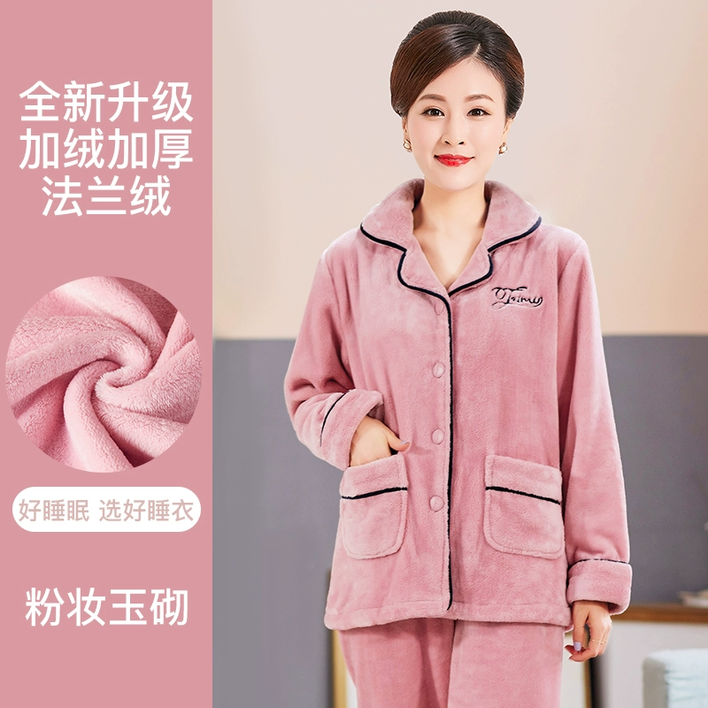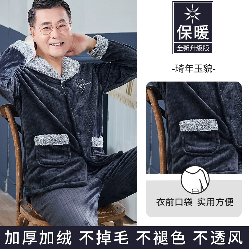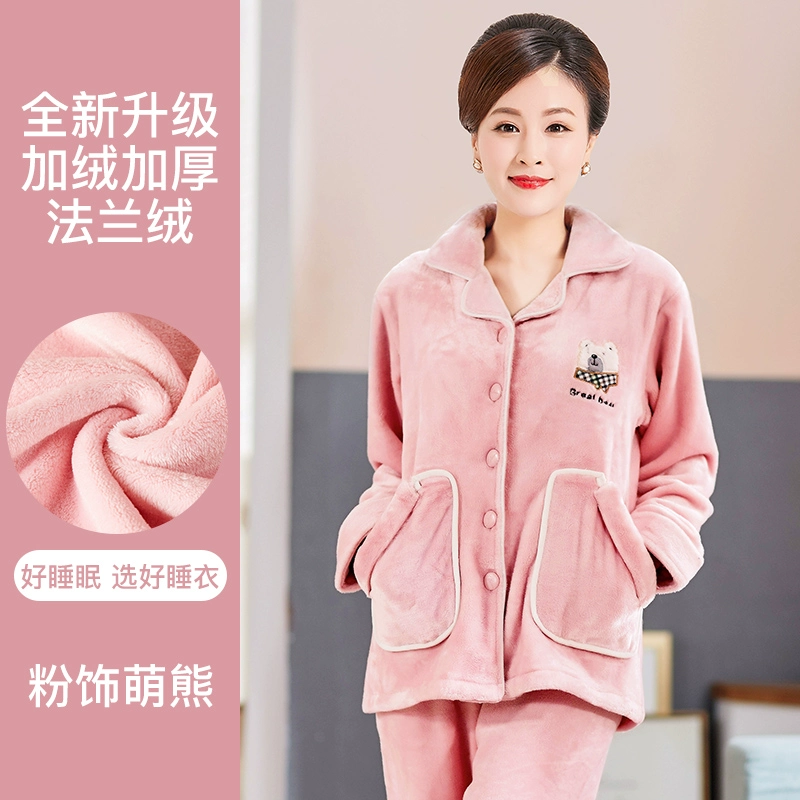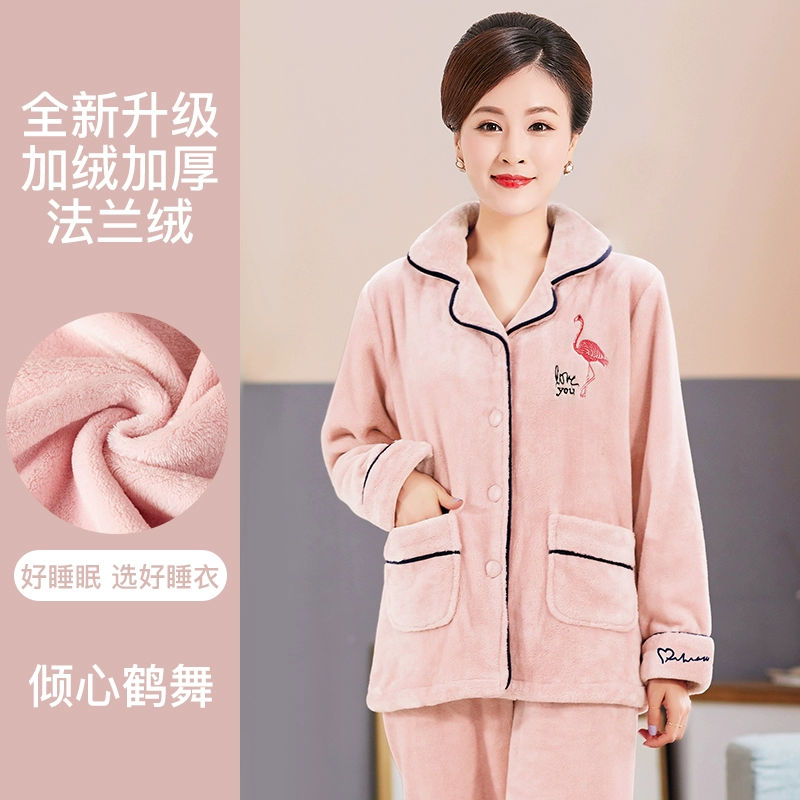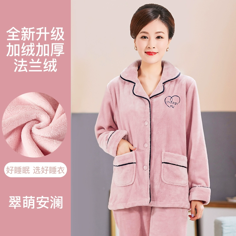 Middle -aged and elderly pajamas Female winter plus velvet thick men’s coral velvet Mom and Dad spring, autumn and winter home clothes suits