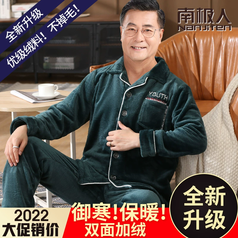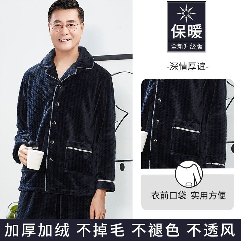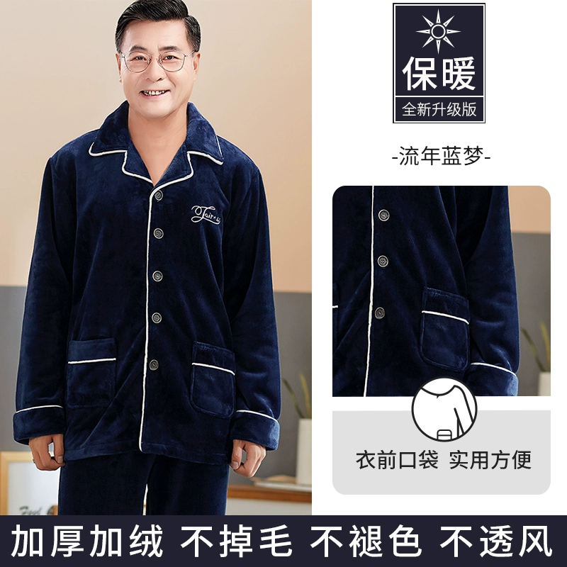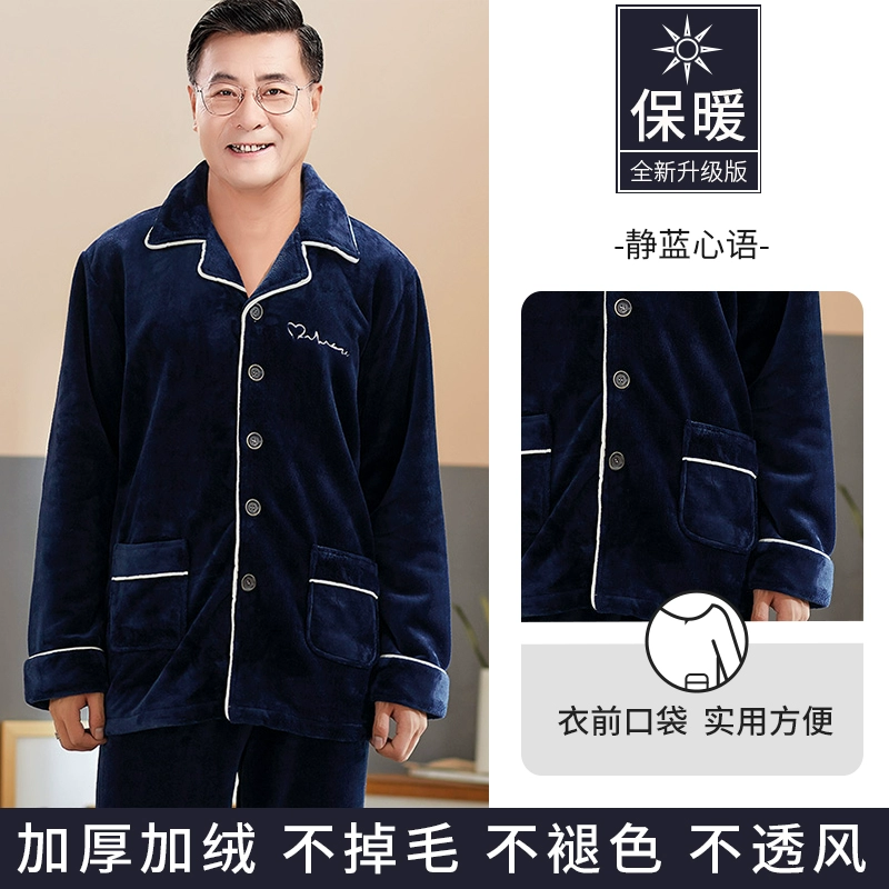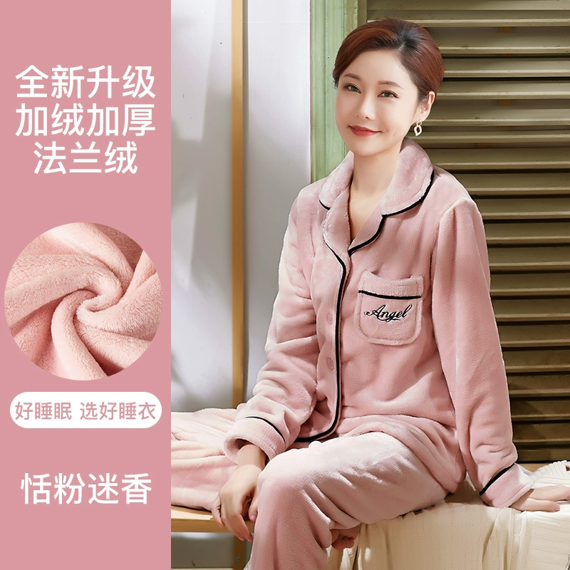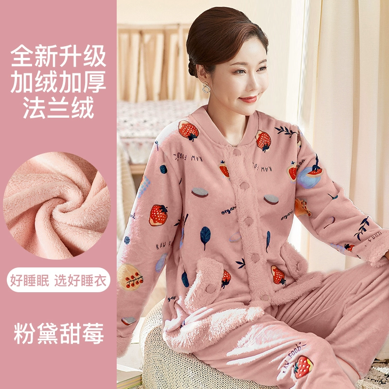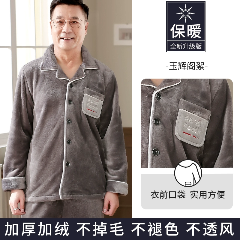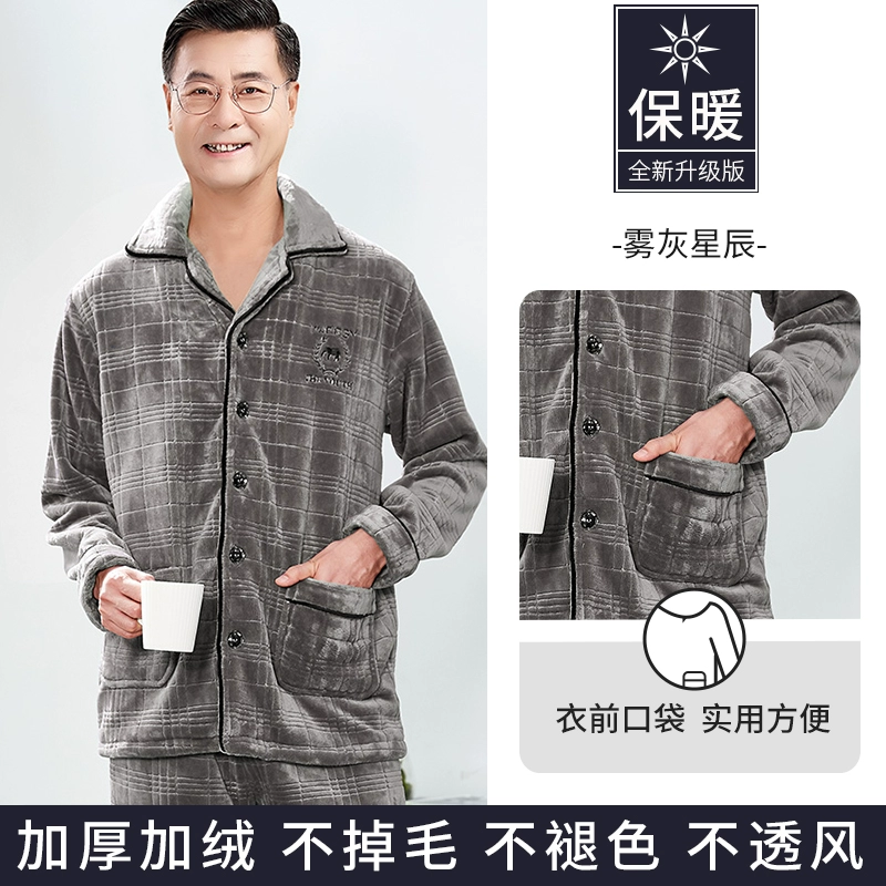 Middle -aged and elderly pajamas Female winter plus velvet thick men’s coral velvet Mom and Dad spring, autumn and winter home clothes suits