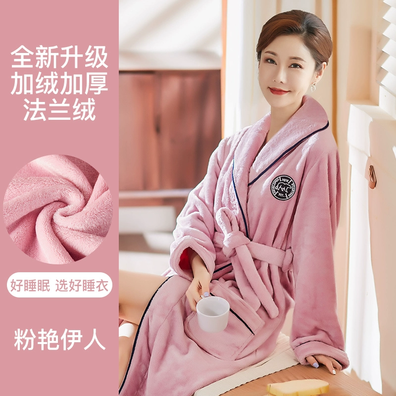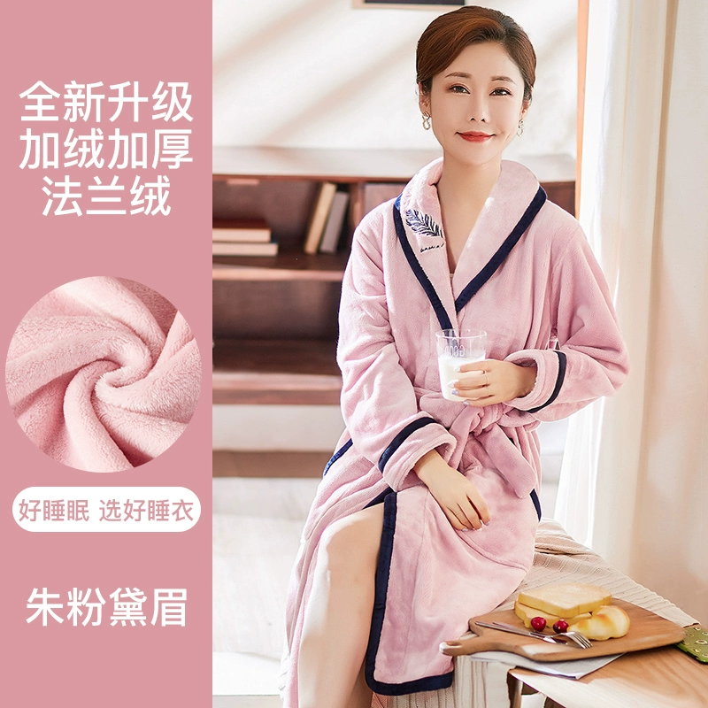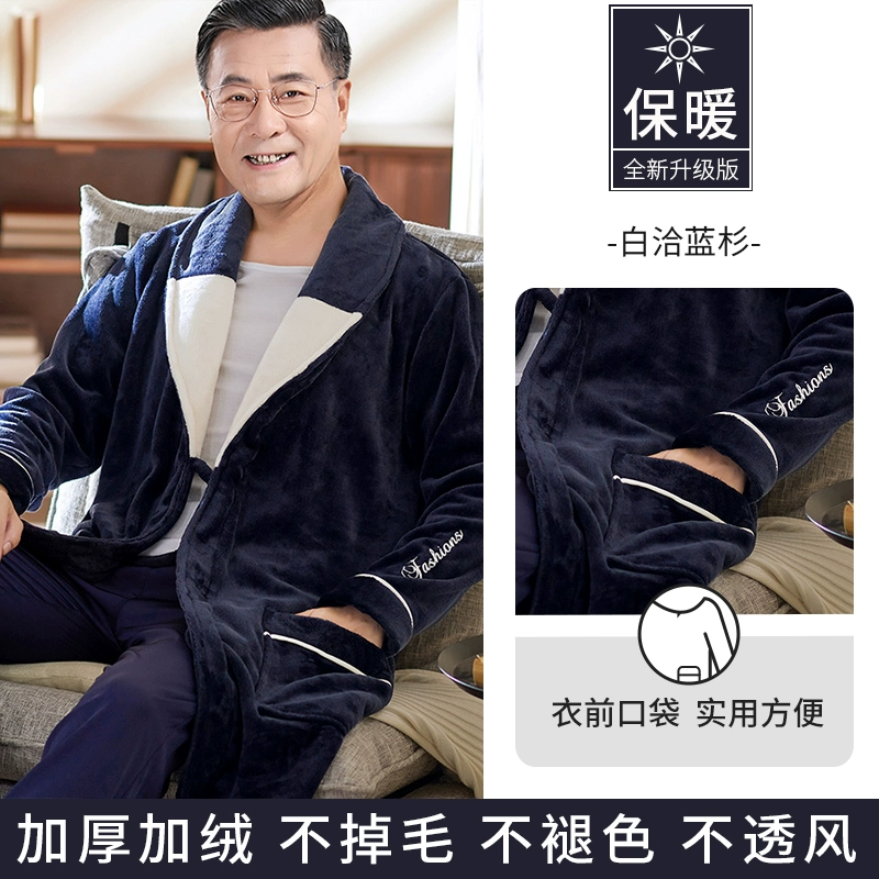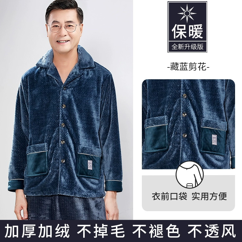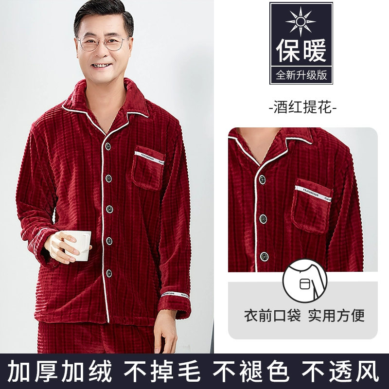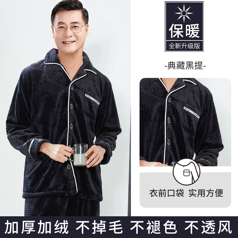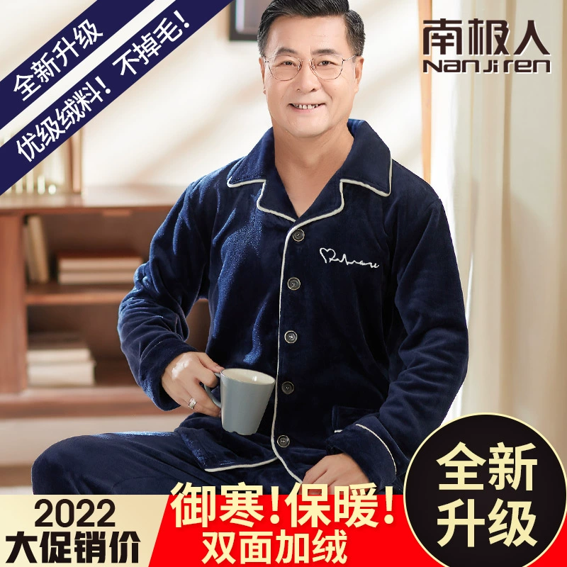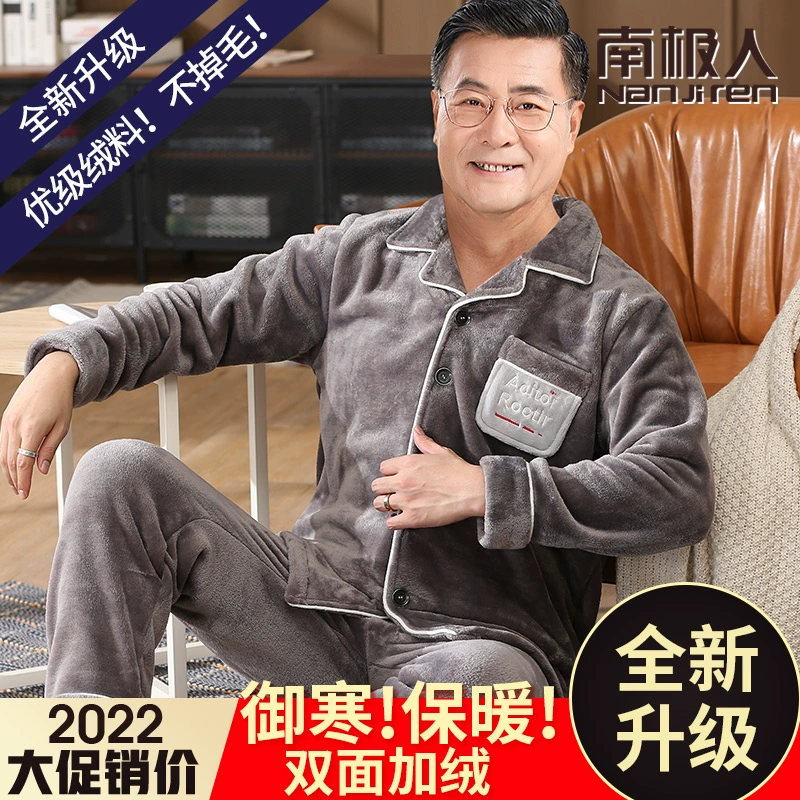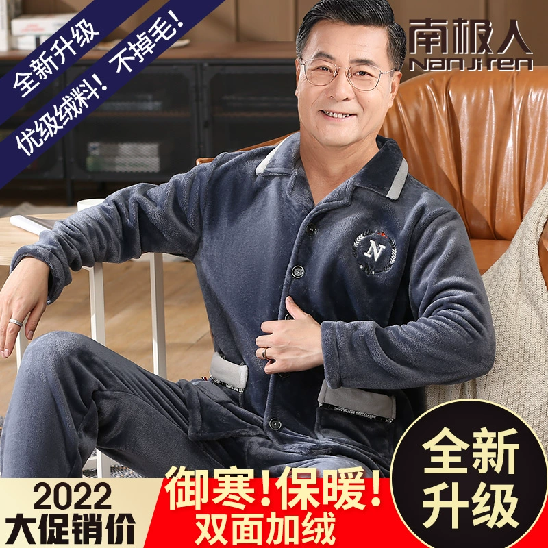 Middle -aged and elderly pajamas Female winter plus velvet thick men’s coral velvet Mom and Dad spring, autumn and winter home clothes suits