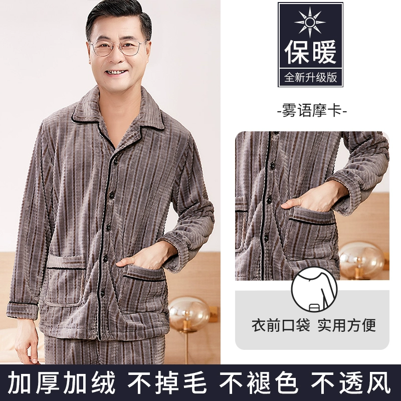 Middle-aged and elderly women's winter velvet thickened pajamas for men's coral velvet parents' spring, autumn and winter home wear sets