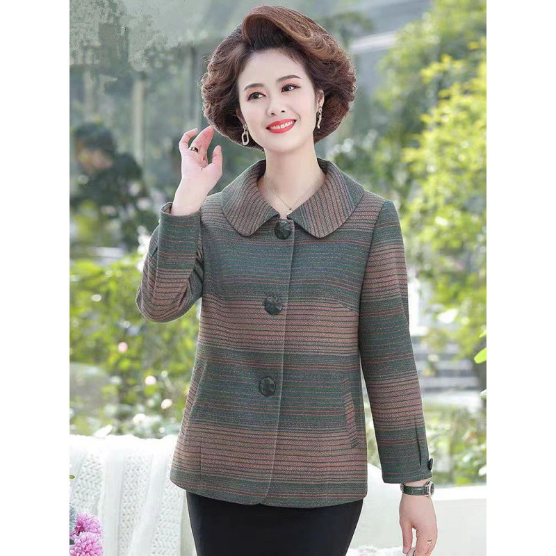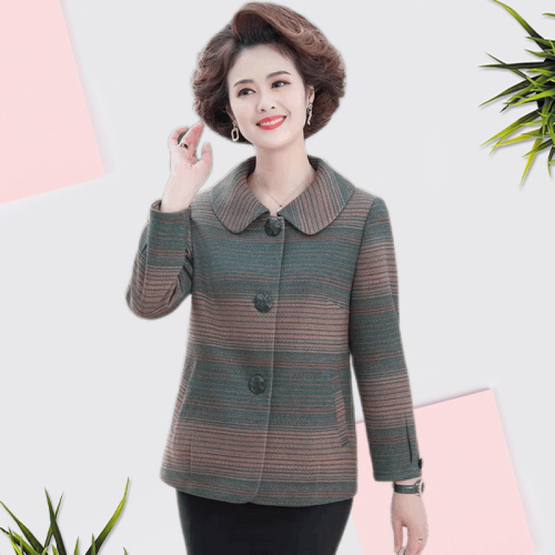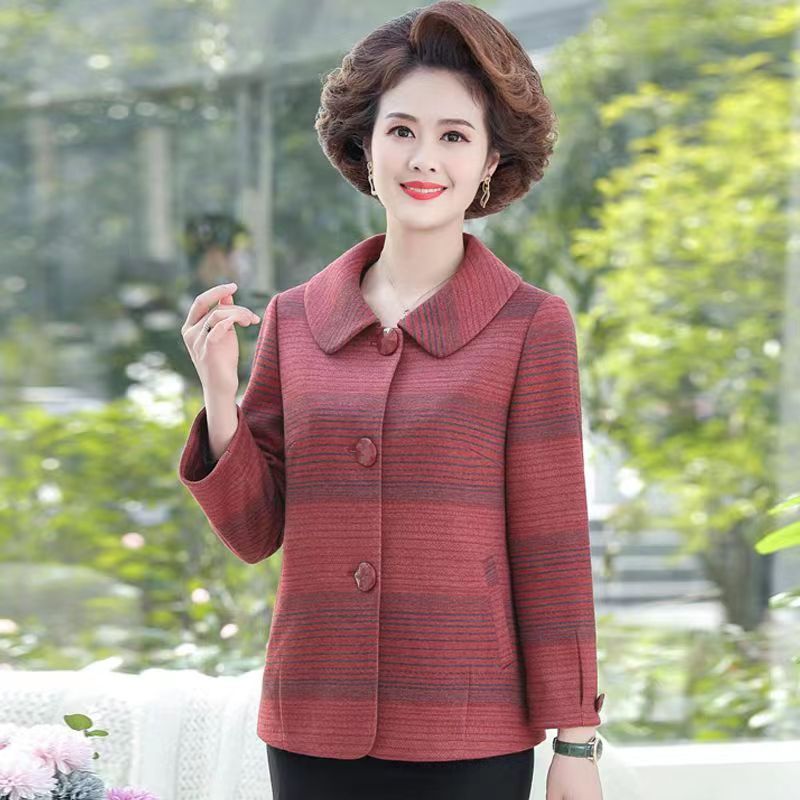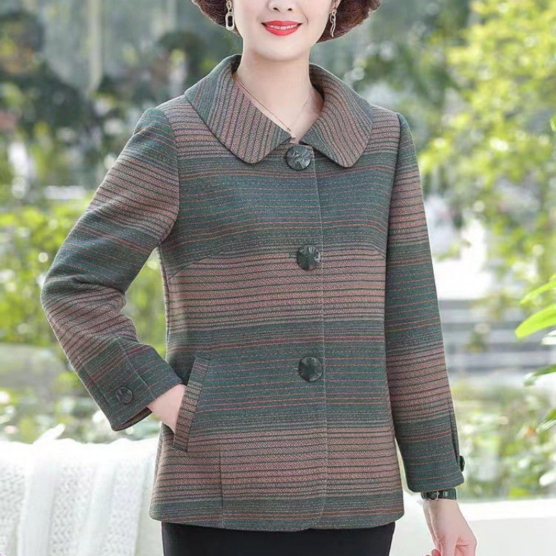 Middle-aged and old spring and autumn mother’s woolen coat 2024 new style plaid outerwear elegant western style loose coat