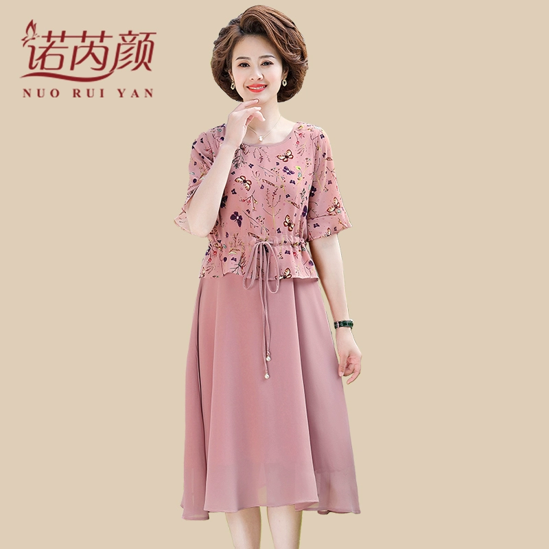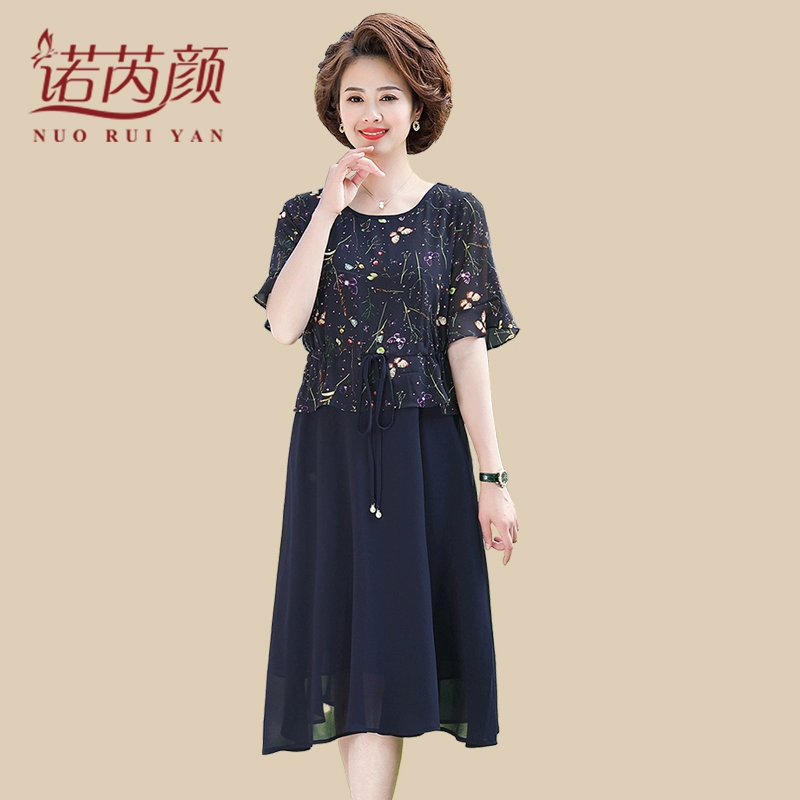 | nameOriginal | Middle-aged chiffon temperament skirt plus size belly-covering summer dress |