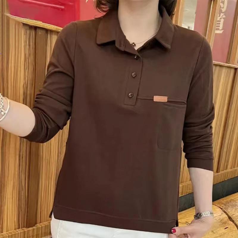 | nameOriginal | Middle-aged Long-sleeved Polo Shirt Women's 2024 Spring and Autumn Elegant Mother's Half-open Lapel Solid Color All-match Top |