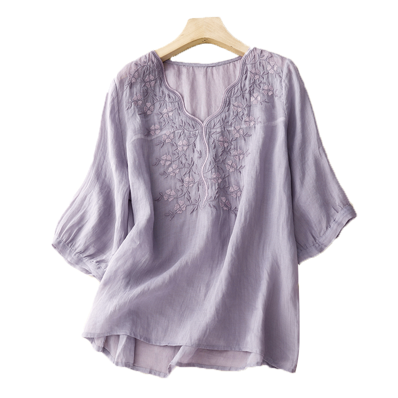 | nameOriginal | Middle-aged Mom Linen Short-sleeved T-shirt Women's Loose Summer 2024 New Arrival plus size chubby girl Cotton and Linen Seven-sleeved Top |