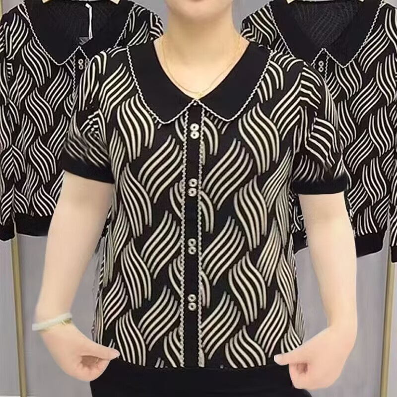 | nameOriginal | Middle-aged Mom Spring and Summer New Wave Doll Collar T-shirt Women's Korean-style Loose Loose Belly Covering All-match Top |