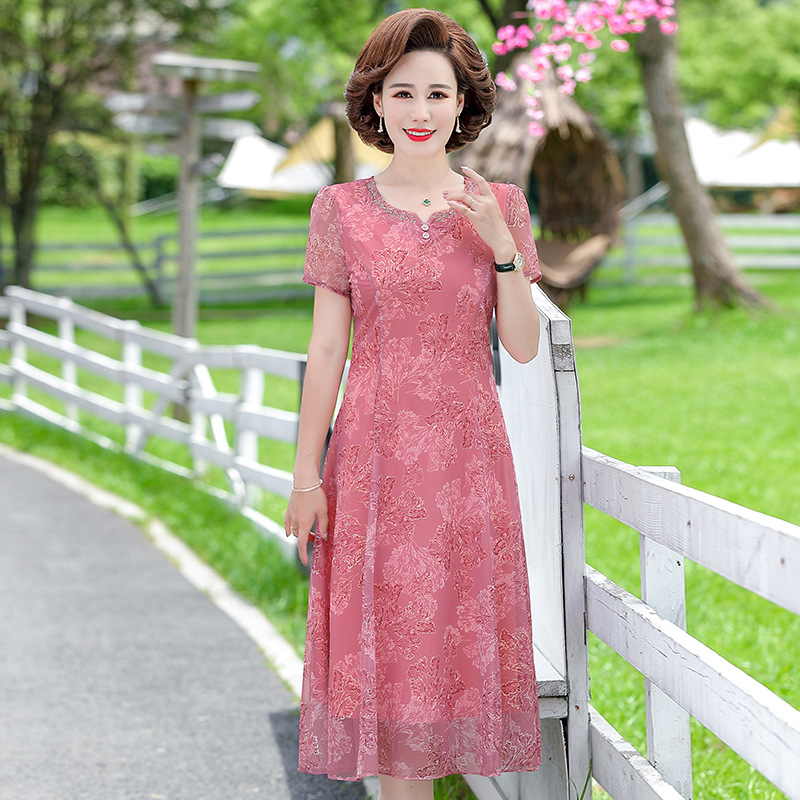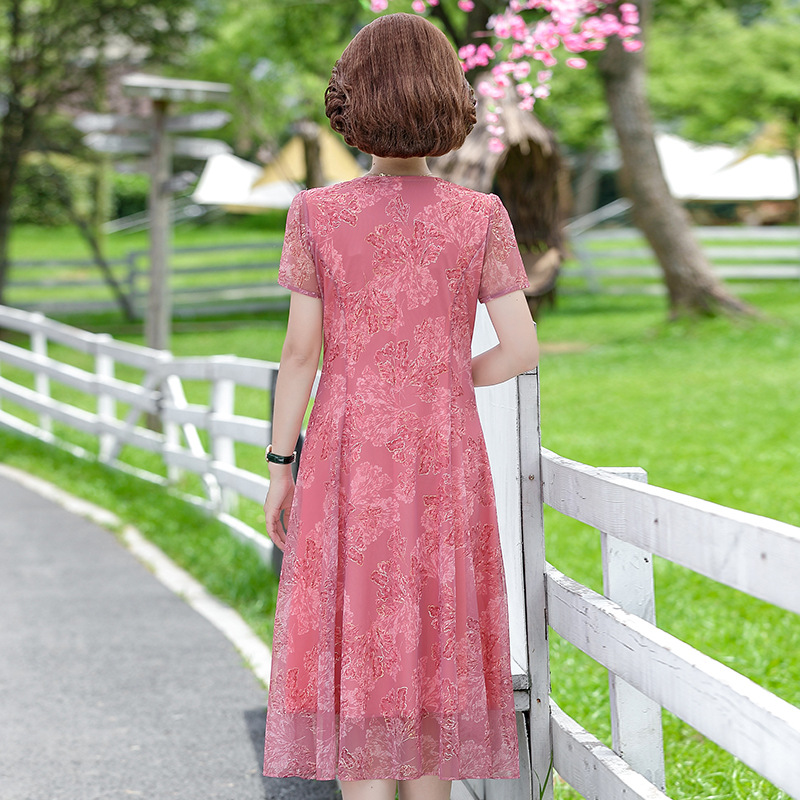 | nameOriginal | Middle-aged mom summer short sleeve dress Western style 2023 new middle-aged and elderly women's clothing 40-year-old wide Lady chiffon skirt |