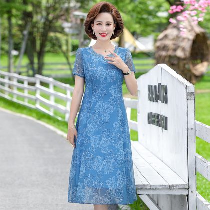 | nameOriginal | Middle-aged mom summer short sleeve dress Western style 2023 new middle-aged and elderly women's clothing 40-year-old wide Lady chiffon skirt |