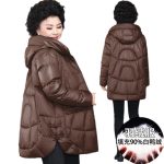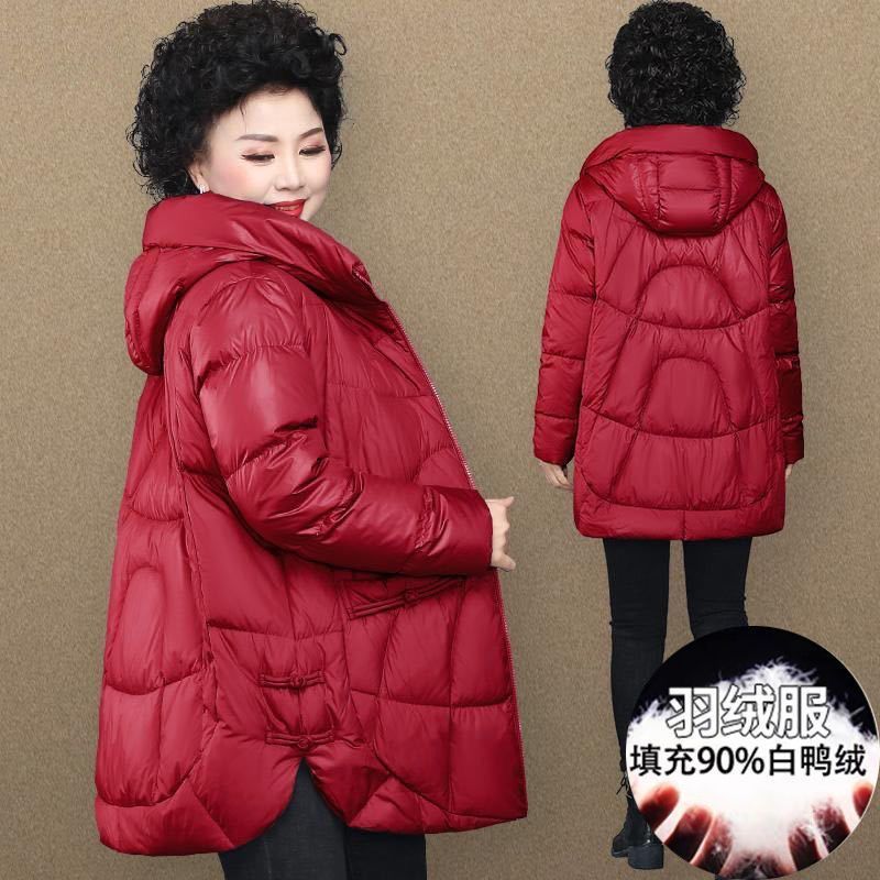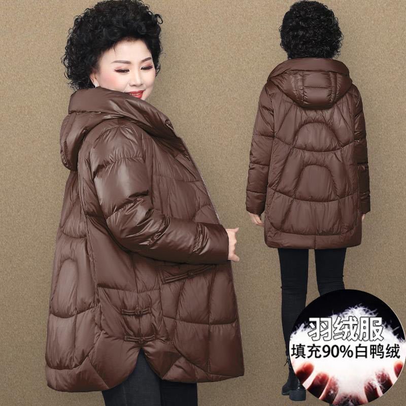 | nameOriginal | Middle-aged mom winter wear glossy down jacket mid-length plus size middle-aged and elderly women's fashionable down jacket |