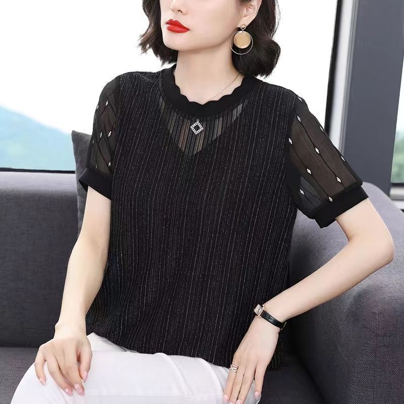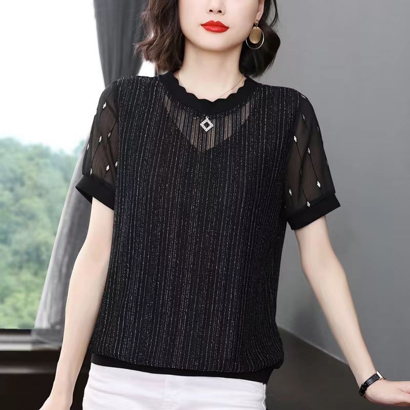 | nameOriginal | Middle-aged Mom's Temperament Age-reducing Short-sleeved Lace Shirt Women's Summer New Korean-style Loose Belly-covering Top Small Shirt |