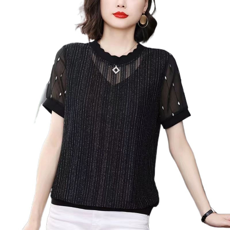 Middle-aged Mom’s Temperament Age-reducing Short-sleeved Lace Shirt Women’s Summer New Korean-style Loose Belly-covering Top Small Shirt